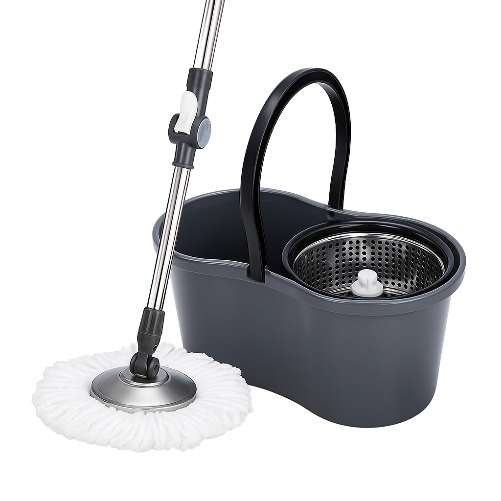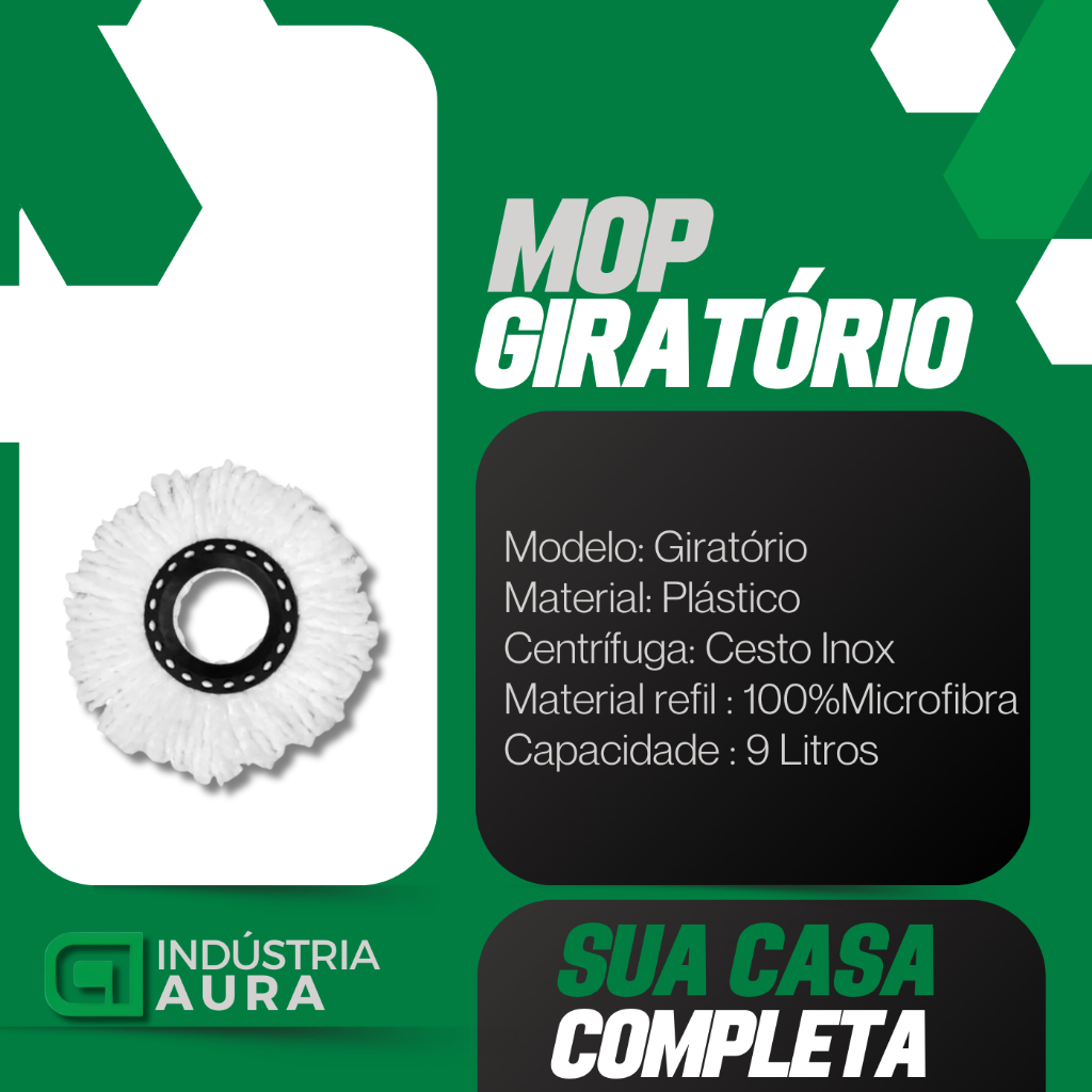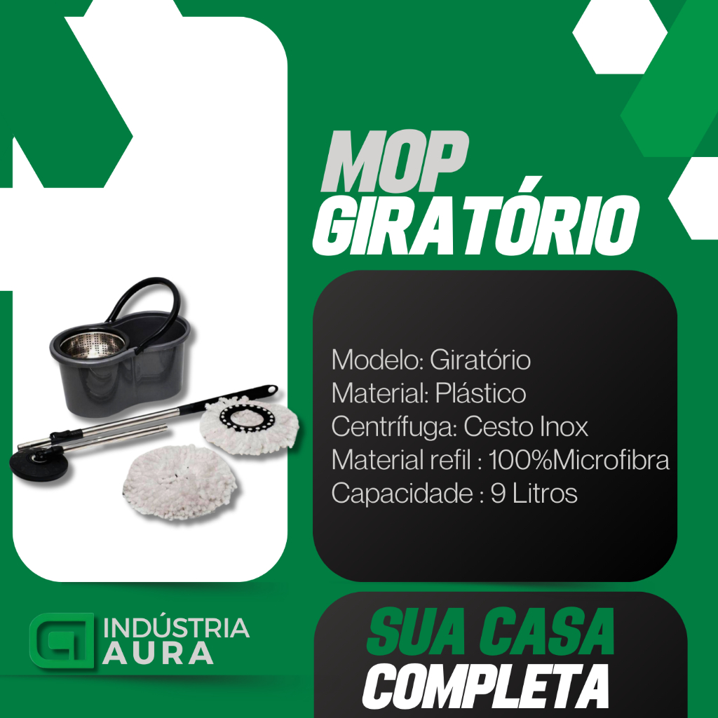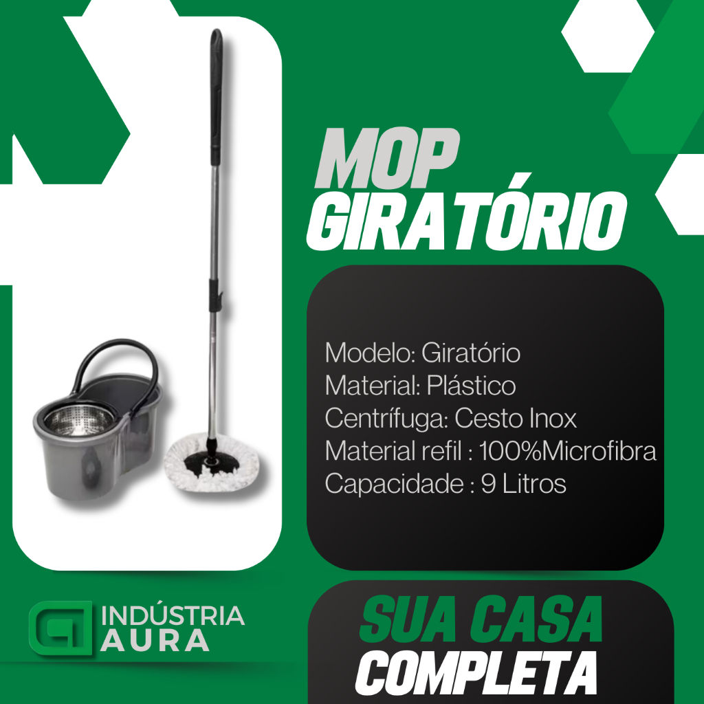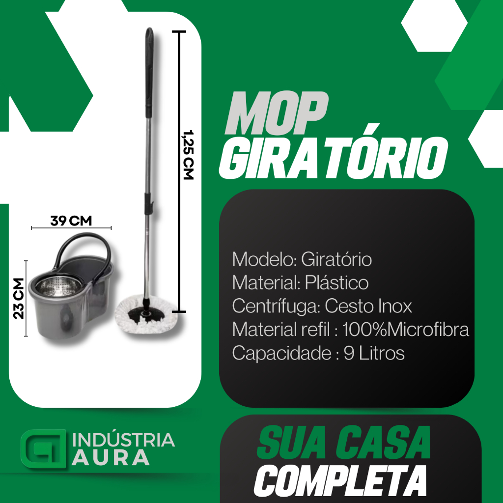 Mop Com Centrifuga Inox e Cabo em Inox Com Refil de Microfibra 8 Litros Limpeza Casa