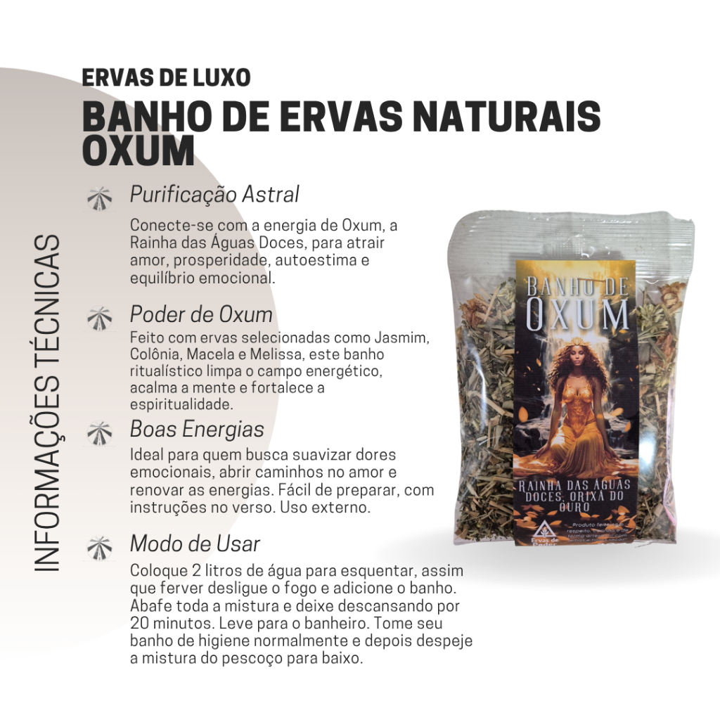 Banho de Ervas Orixá Oxum Artesanal Energético Guia Espiritual Umbanda