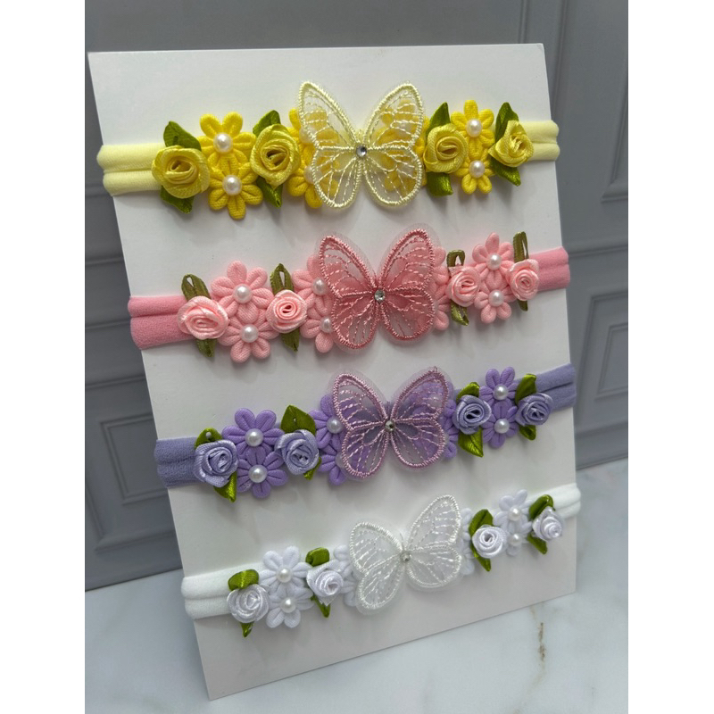 Faixinhas de Bebê Borboleta Com Flores Enxoval Menina Faixinha ou Kit