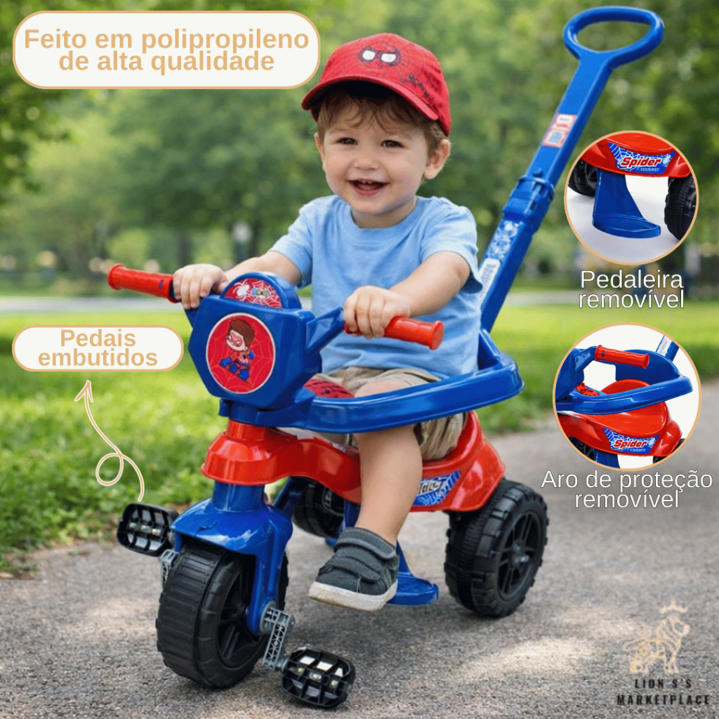 Motoca Triciclo Infantil Menino e Menina Haste Removível Pedais Embutidos