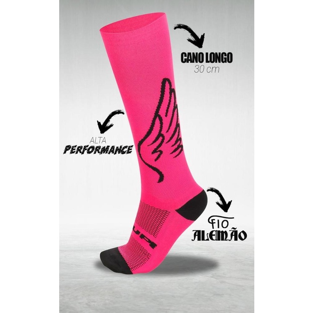 Kit 02 Pares Meia Corrida Ciclismo HUPI Cano Longo Semi Compressiva Asas