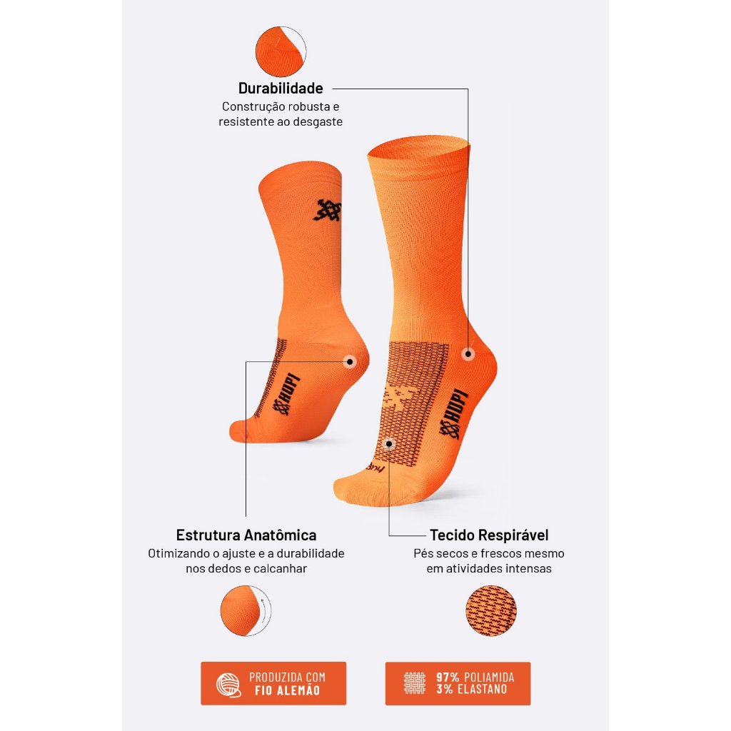 Meia HUPI Lisa Alaranjado Neon