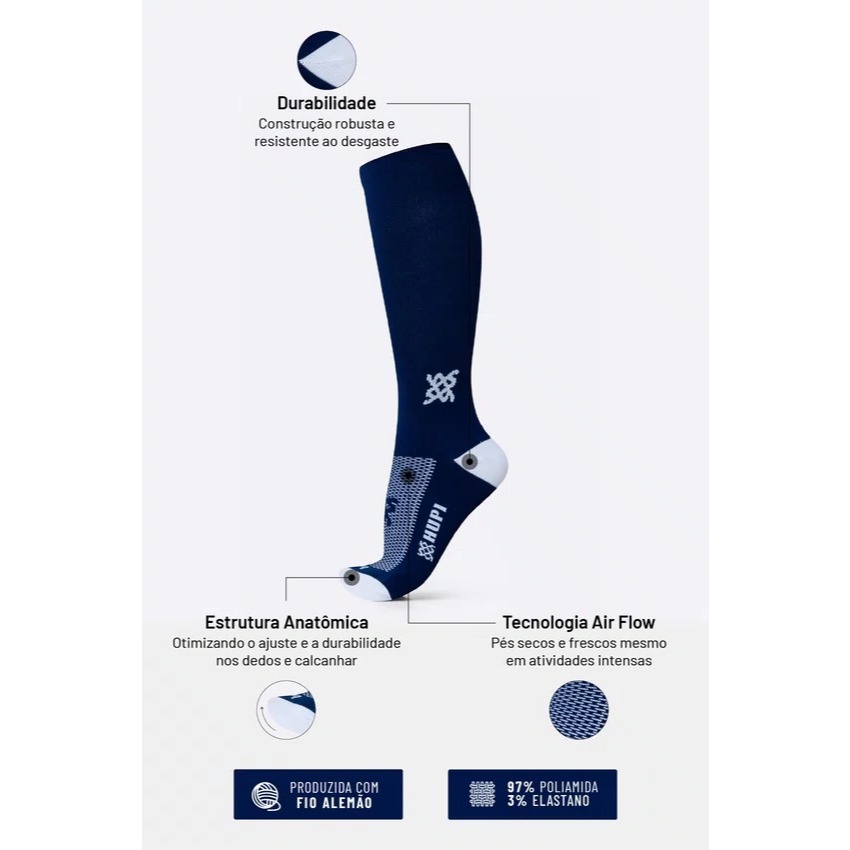 Meia HUPI Longa Lisa Azul Marinho