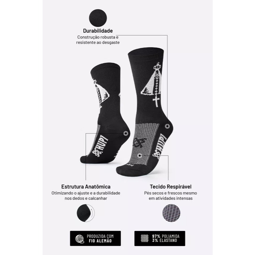 Meia Nossa Senhora Aparecida HUPI - Tamanho LT para pés menores 34-38, Ideal para Corrida e Bike