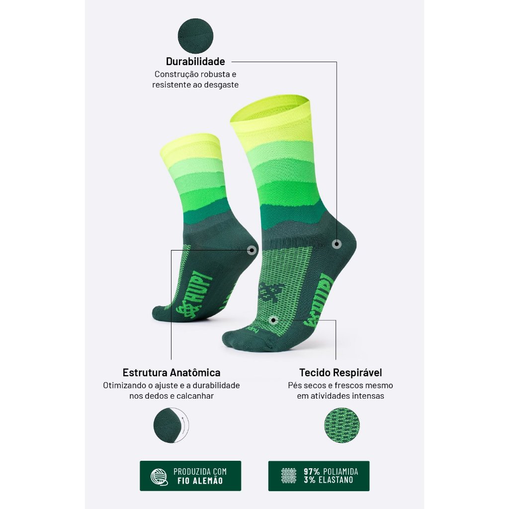 Meia HUPI Colors Verde 1 Par Tamanho 36-42, Ideal para Corrida e Ciclismo Cano Médio