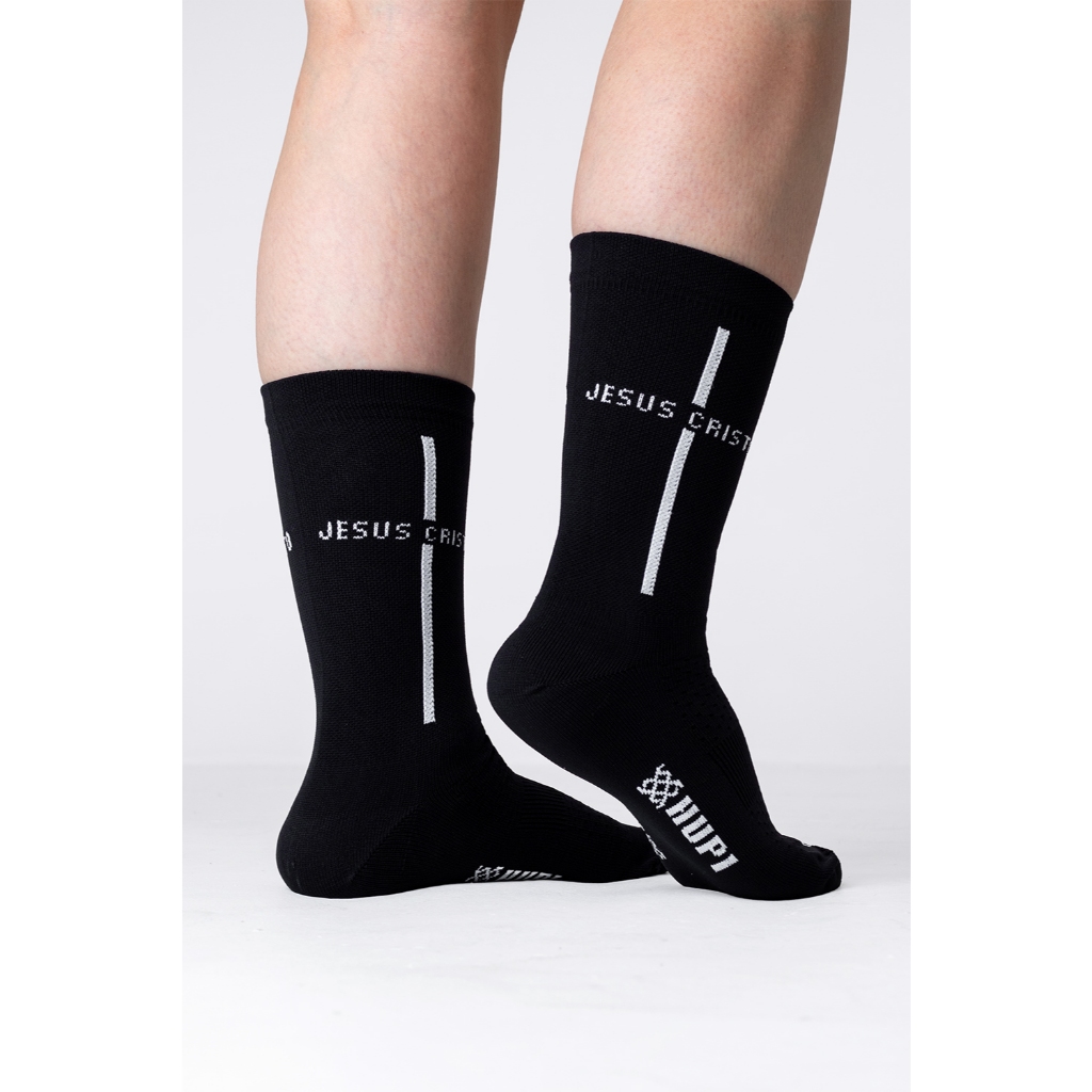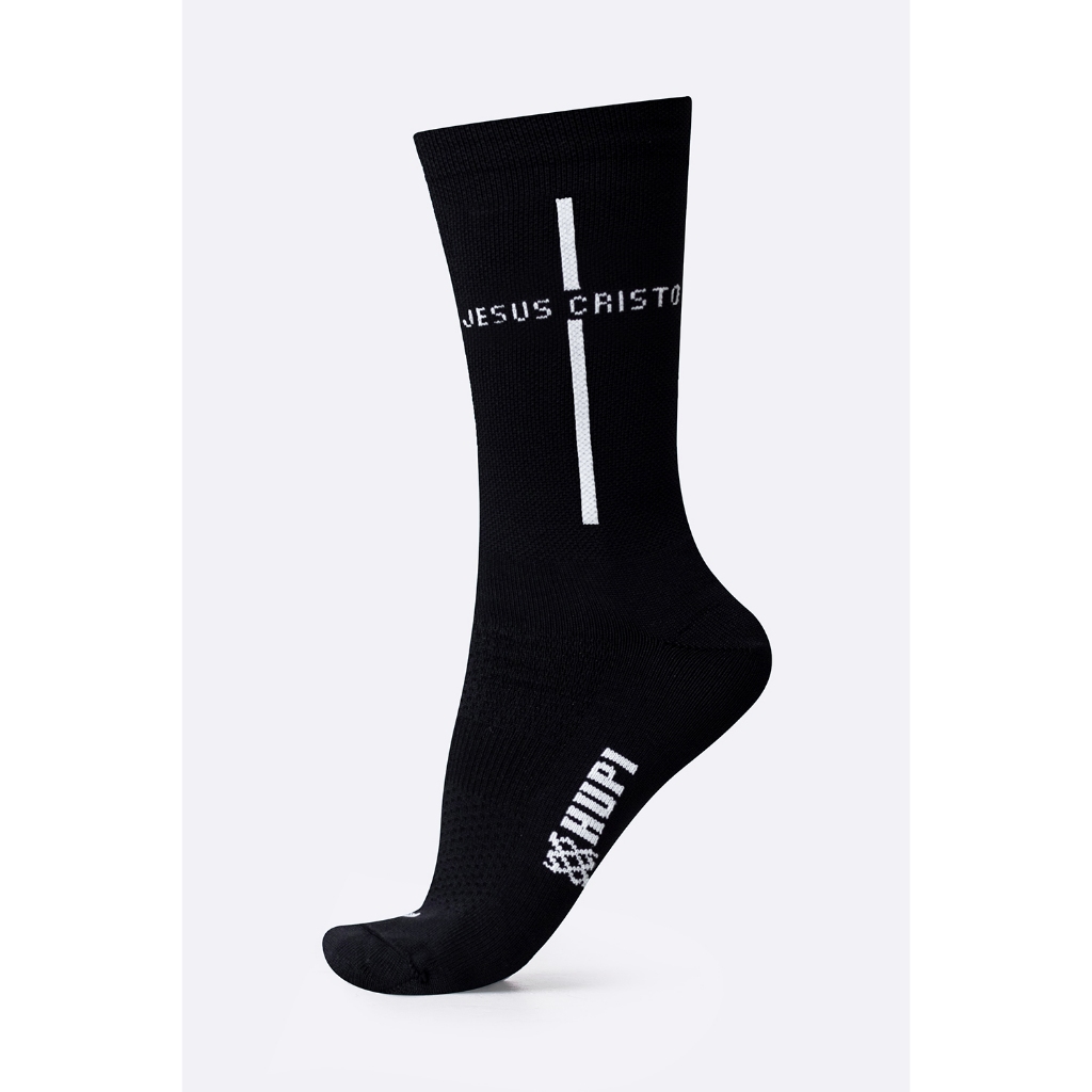 Meia para Corrida Ciclismo HUPI Jesus Cristo 1 Par, Cor Preto/Branco, Tamanho Normal 36-42