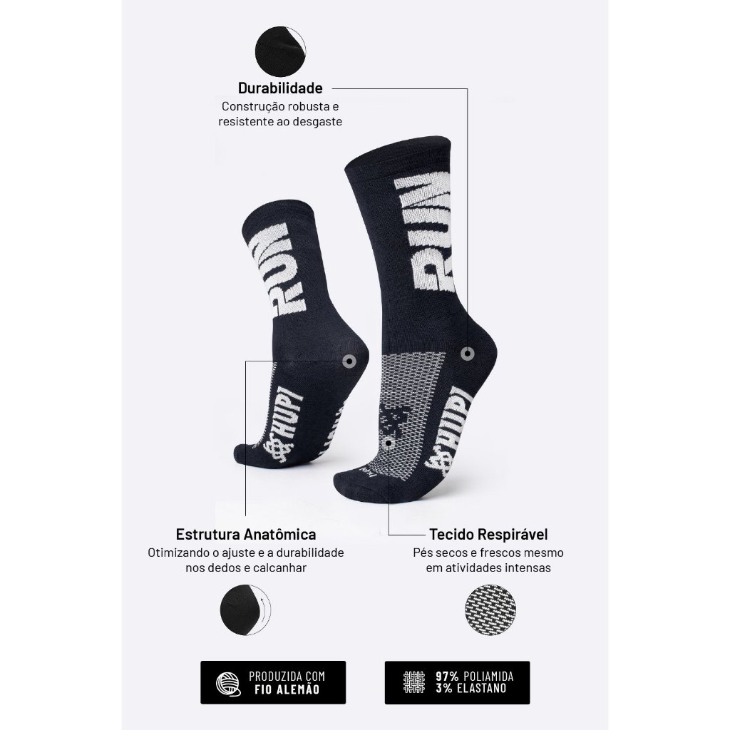 Kit 03 Pares Meia Corrida HUPI Run Preto Azul e Amarelo Tamanho 36-42