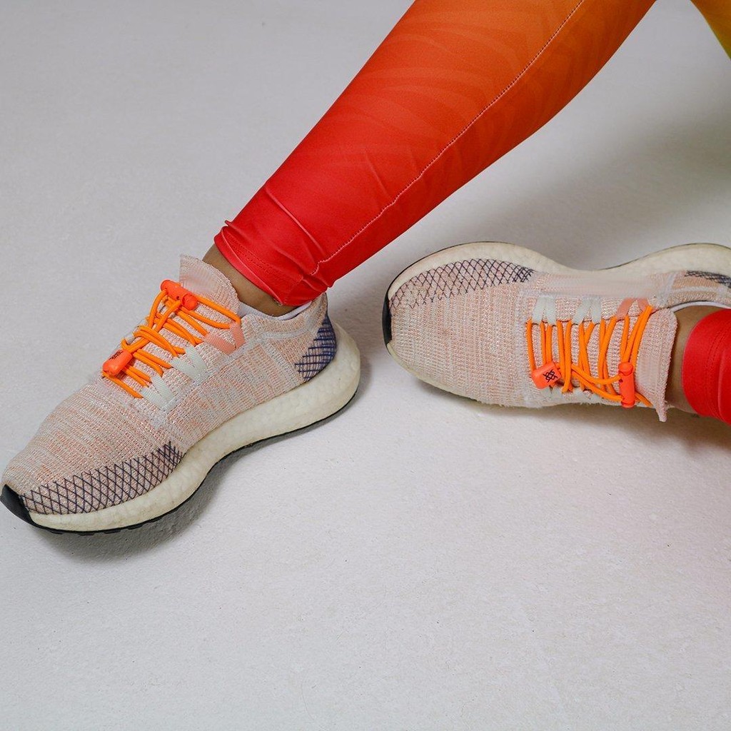 Cadarço Elástico para Tênis Hupi Laces 1 Par, Cor: Laranja Neon Liso | Sem Nó, Ajuste Fácil, Ideal para Corrida e Treino