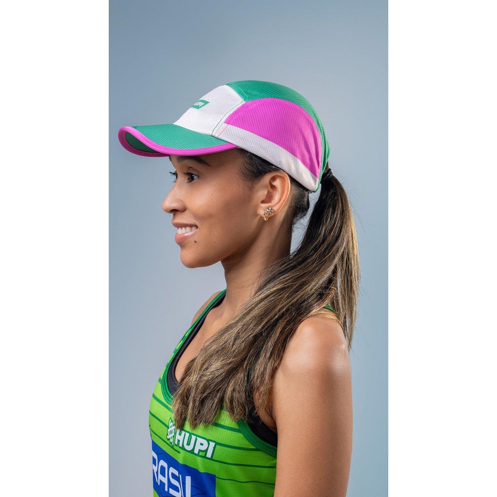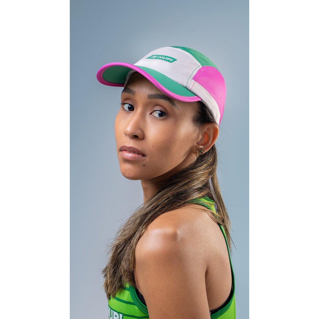 Boné para Corrida HUPI Run Verde/Rosa