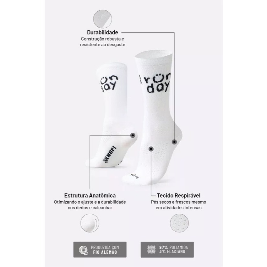 Meia HUPI Run Day Branco - LT para pés menores 34-38