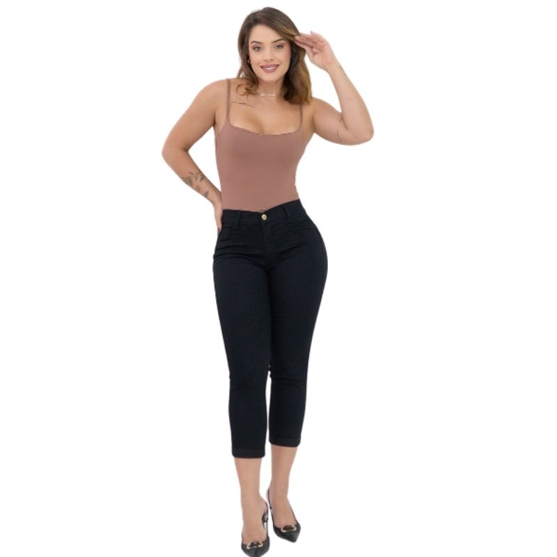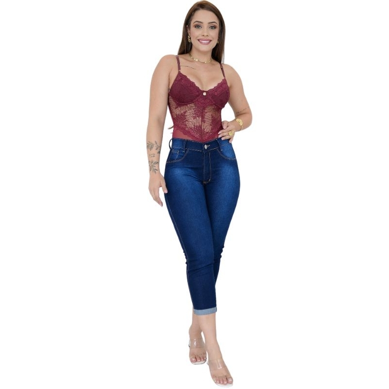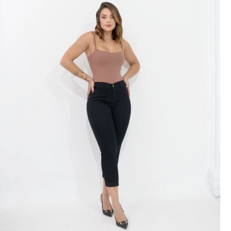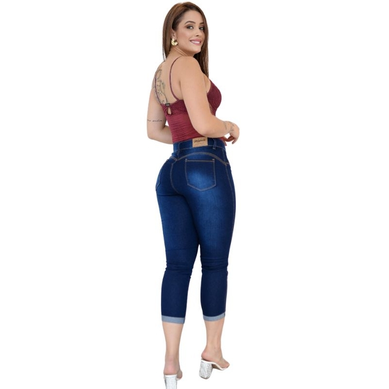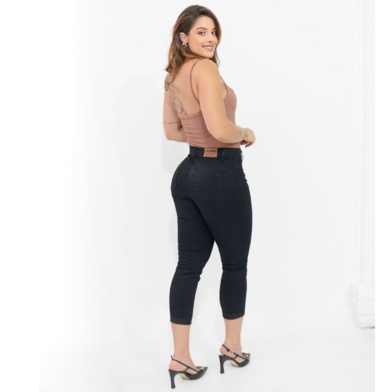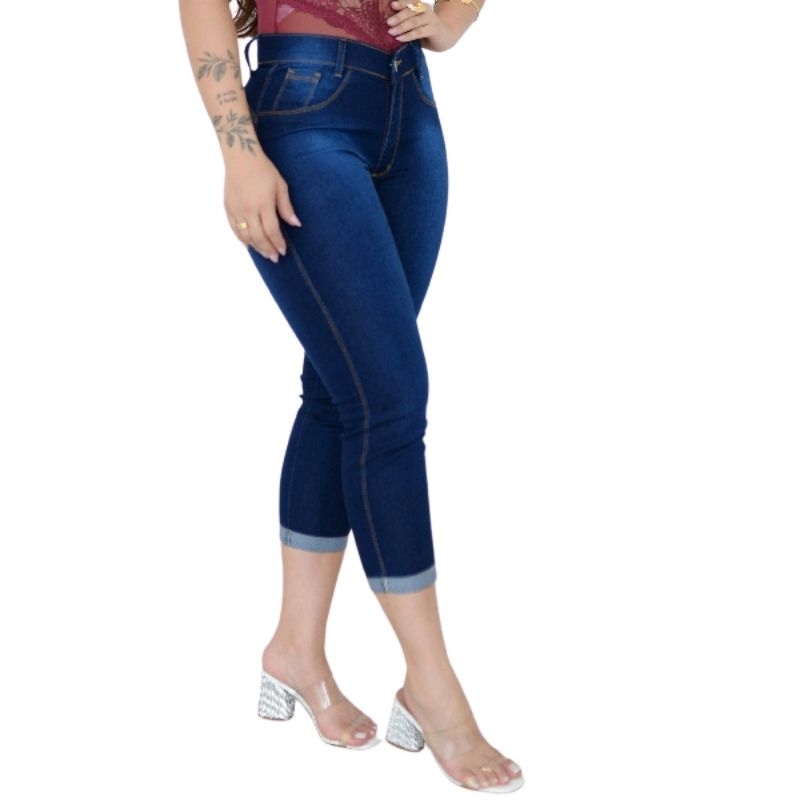 Calça Jeans Capri Cigarrete Moda Feminina Cintura Alta Com Elastano Levanta Bumbum