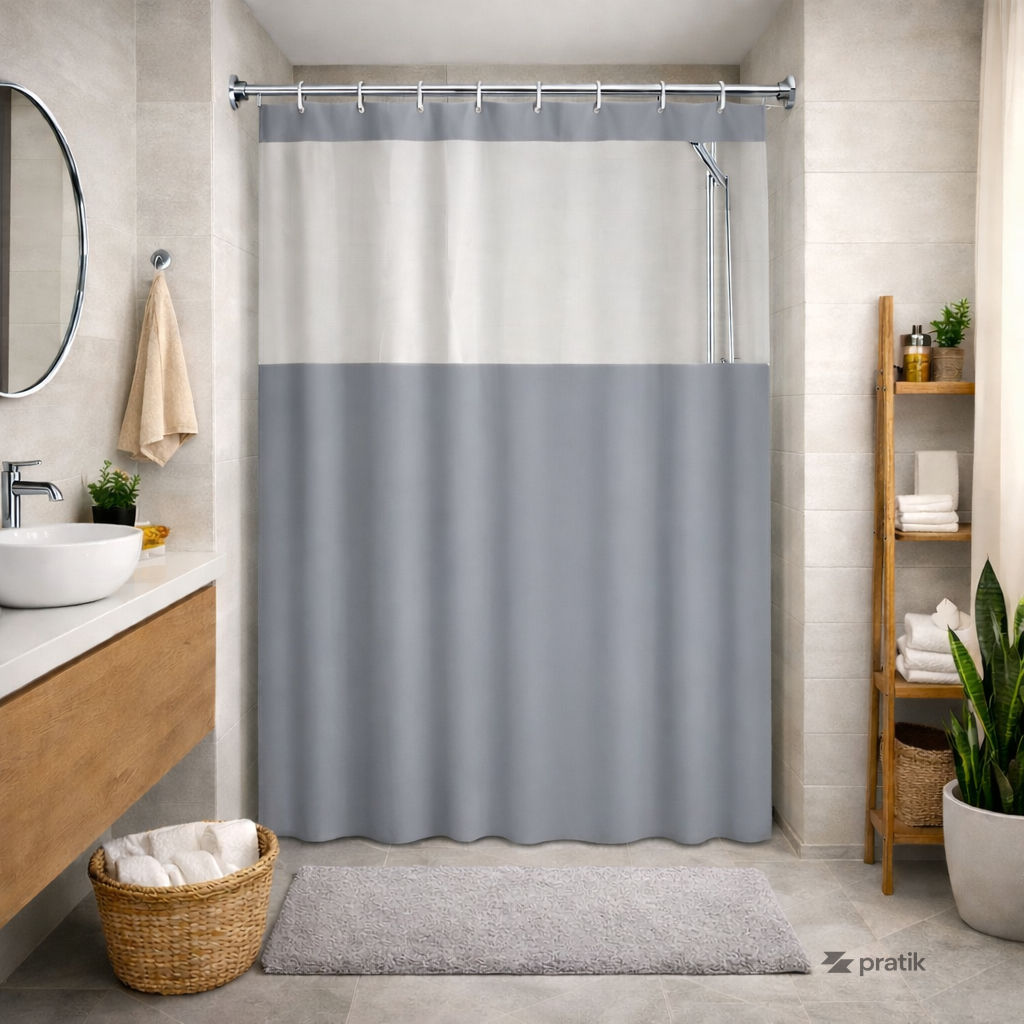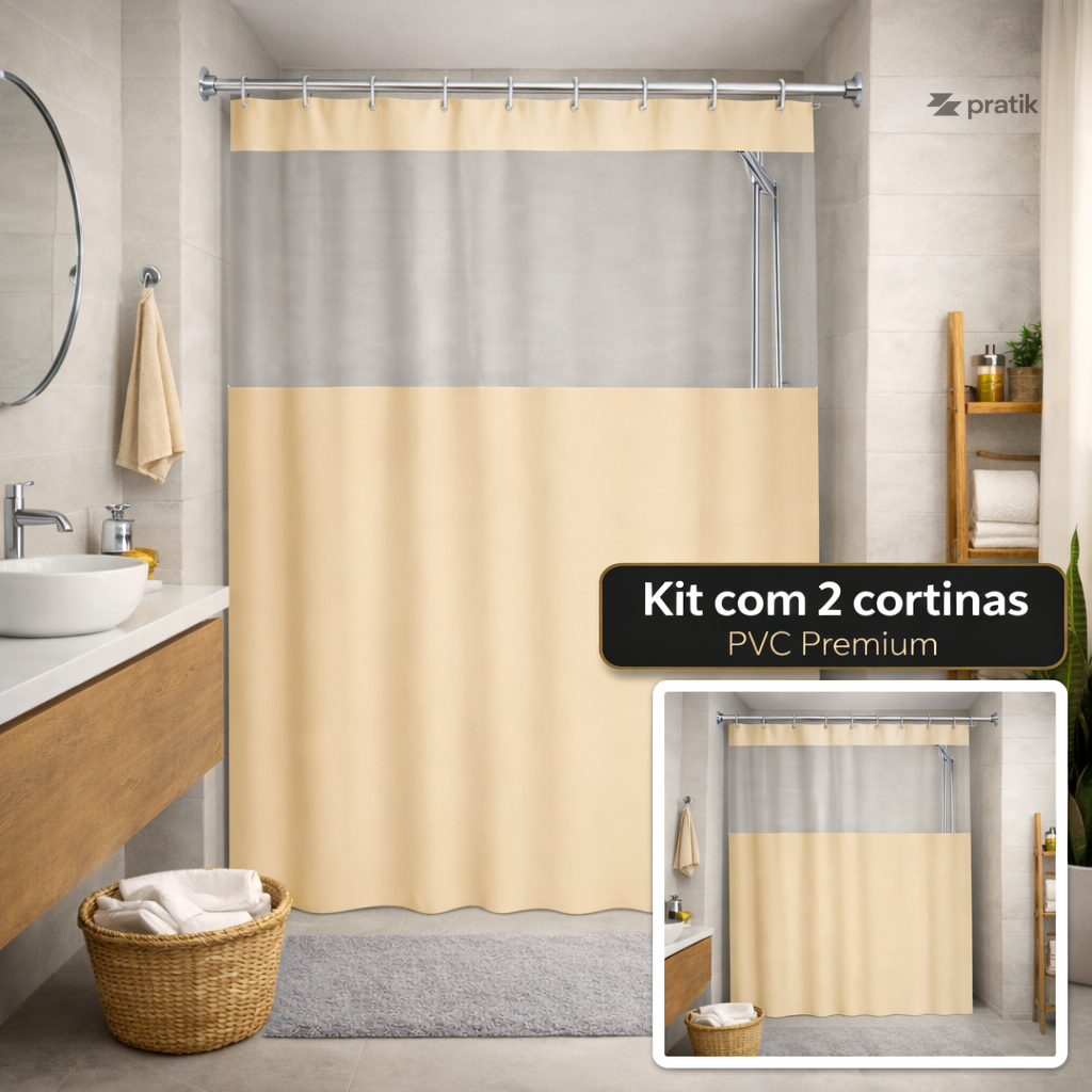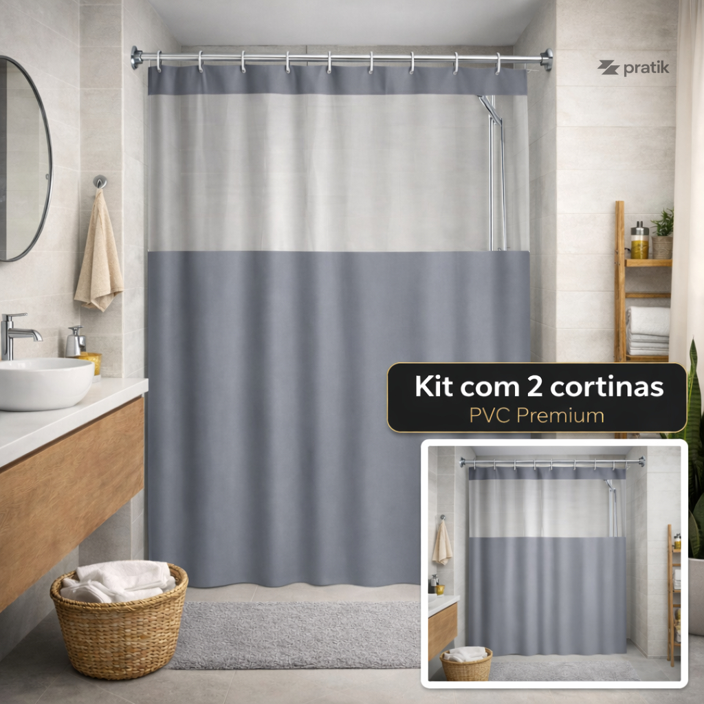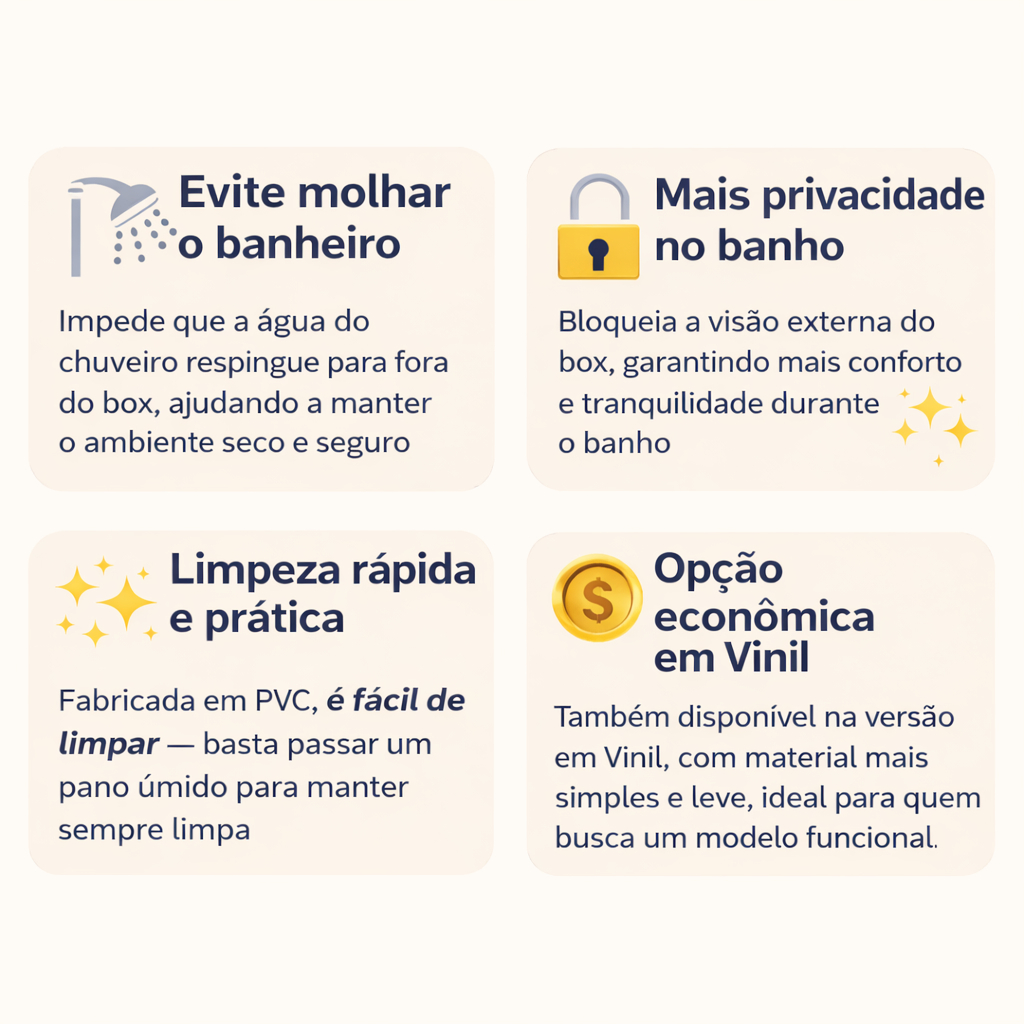 Cortina De Box Banheiro Com Visor Transparente Antimofo 100% Em PVC Resistente ou cortina em Vinil