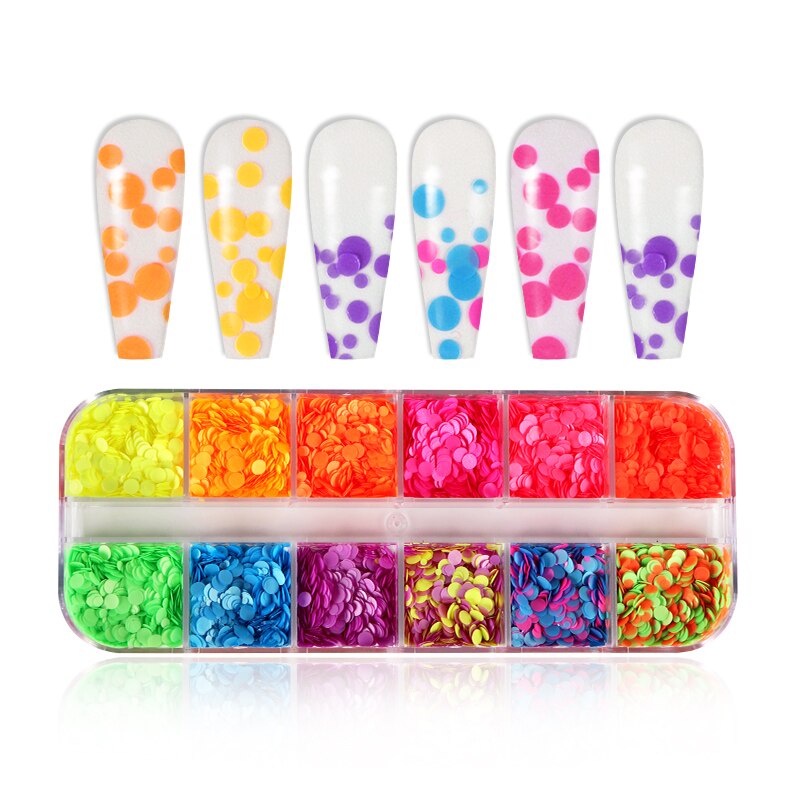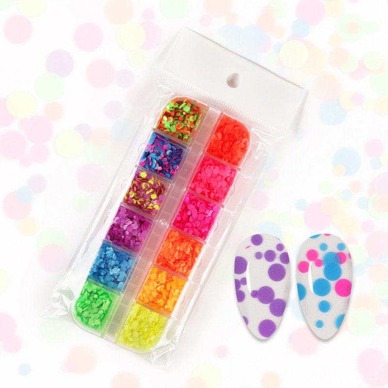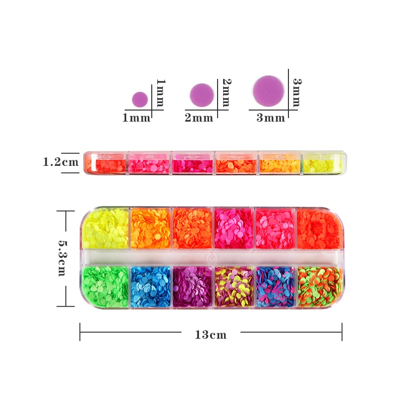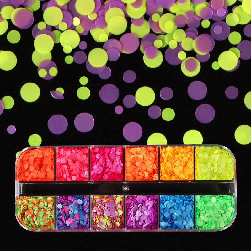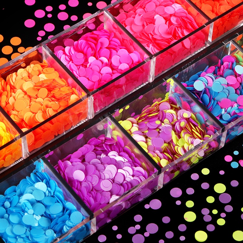 Cor De Neon Rodada Flakes Nail Art Glitter Sparkly 3d Tamanho Misto Lantejoulas Dicas Diy Polonês Nail Art Decorações Manicure