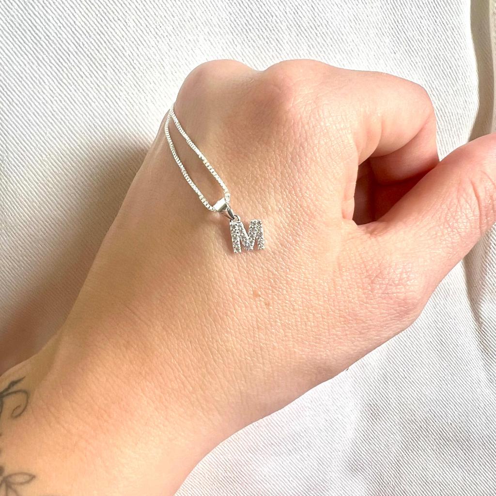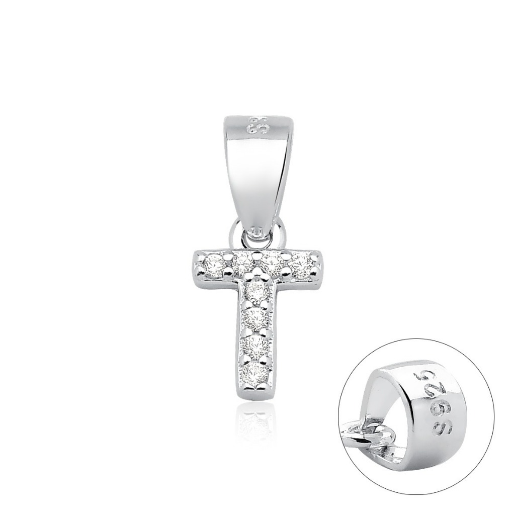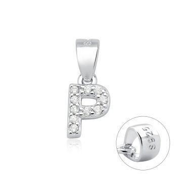 Mini Pingente pequeno 6mm prata 925 letra cravejada pequeno