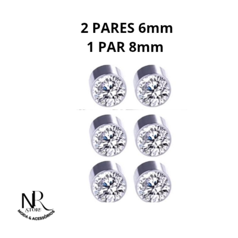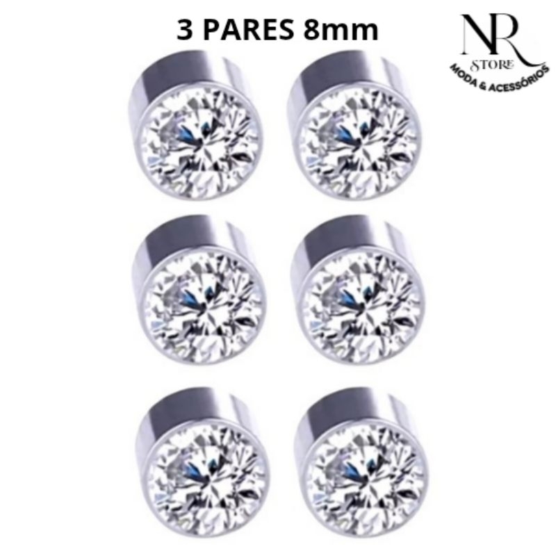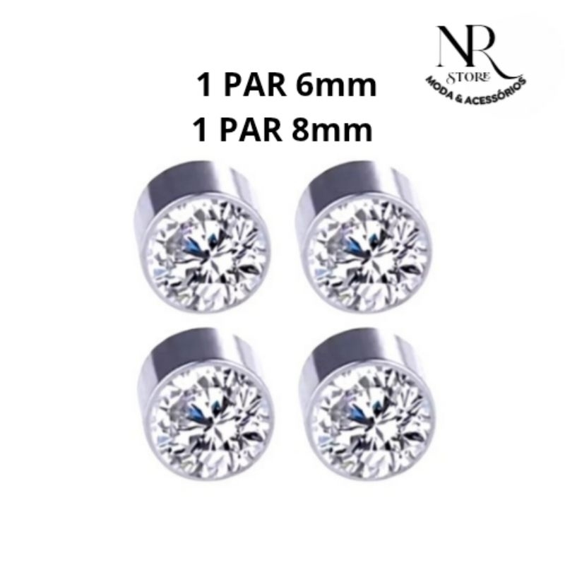 Brincos de Pressão Magnético 6mm - 8mm Brilhante Masculino/Feminino (não precisa de furo)