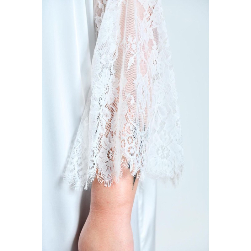 Roupão Noiva Longo Lindíssimo Renda Grande Manga Barra