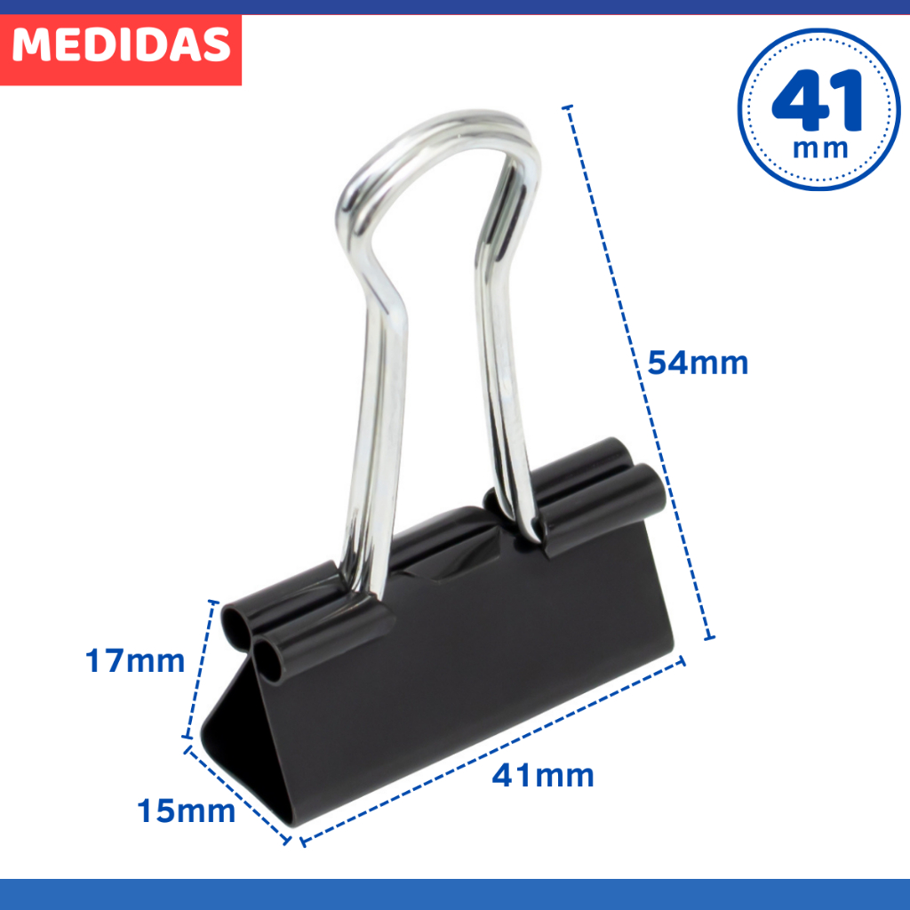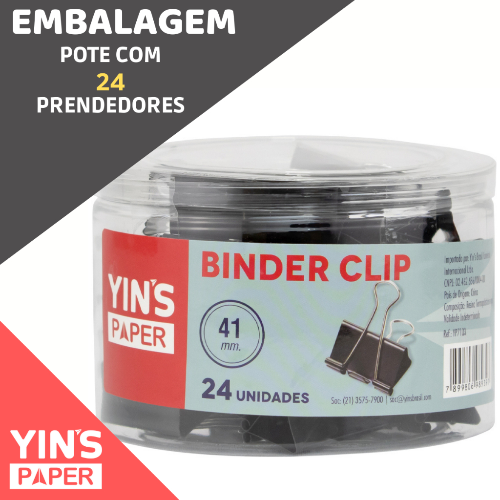 Prendedor De Papel Binder Clip 41 Mm Caixa Com 24 Unidades