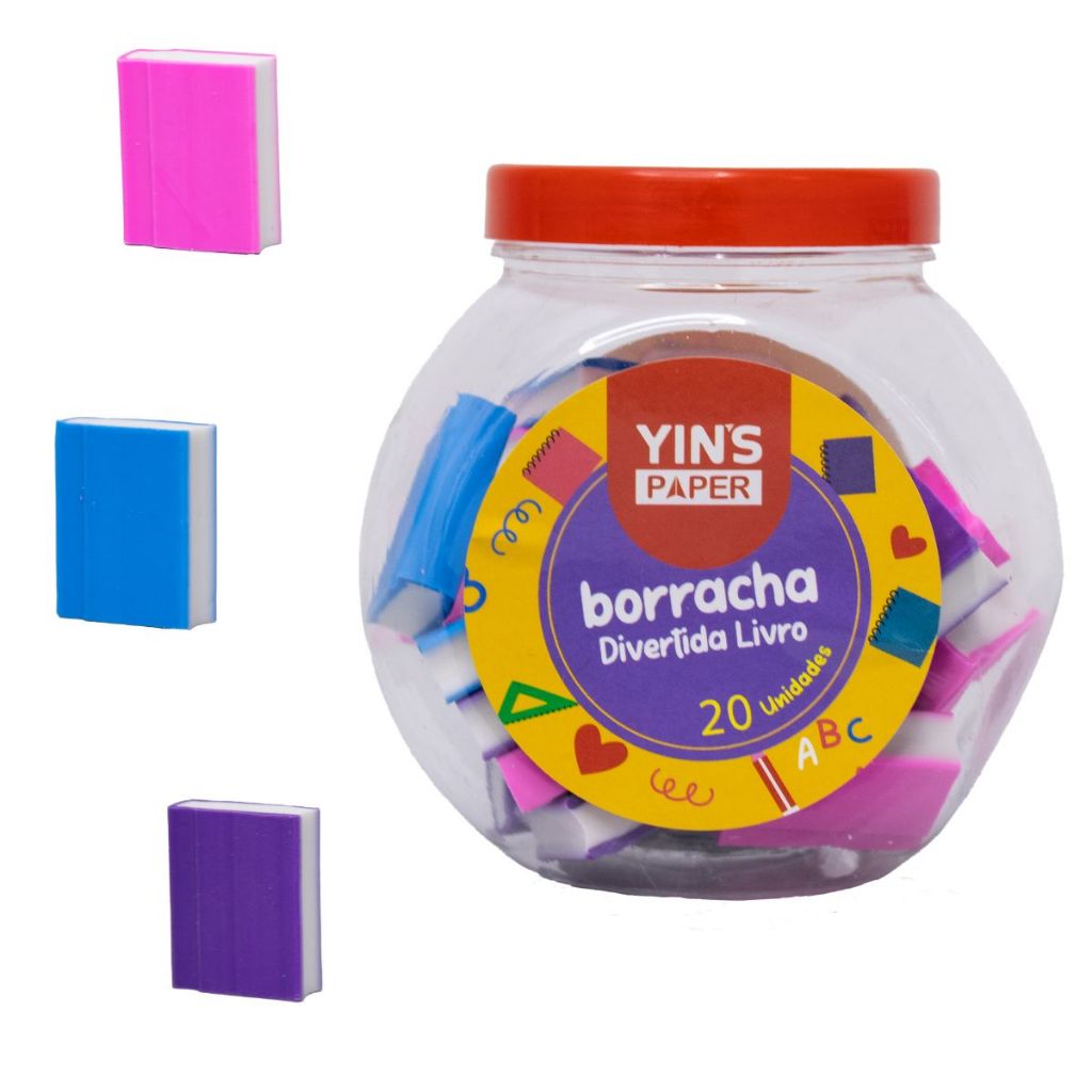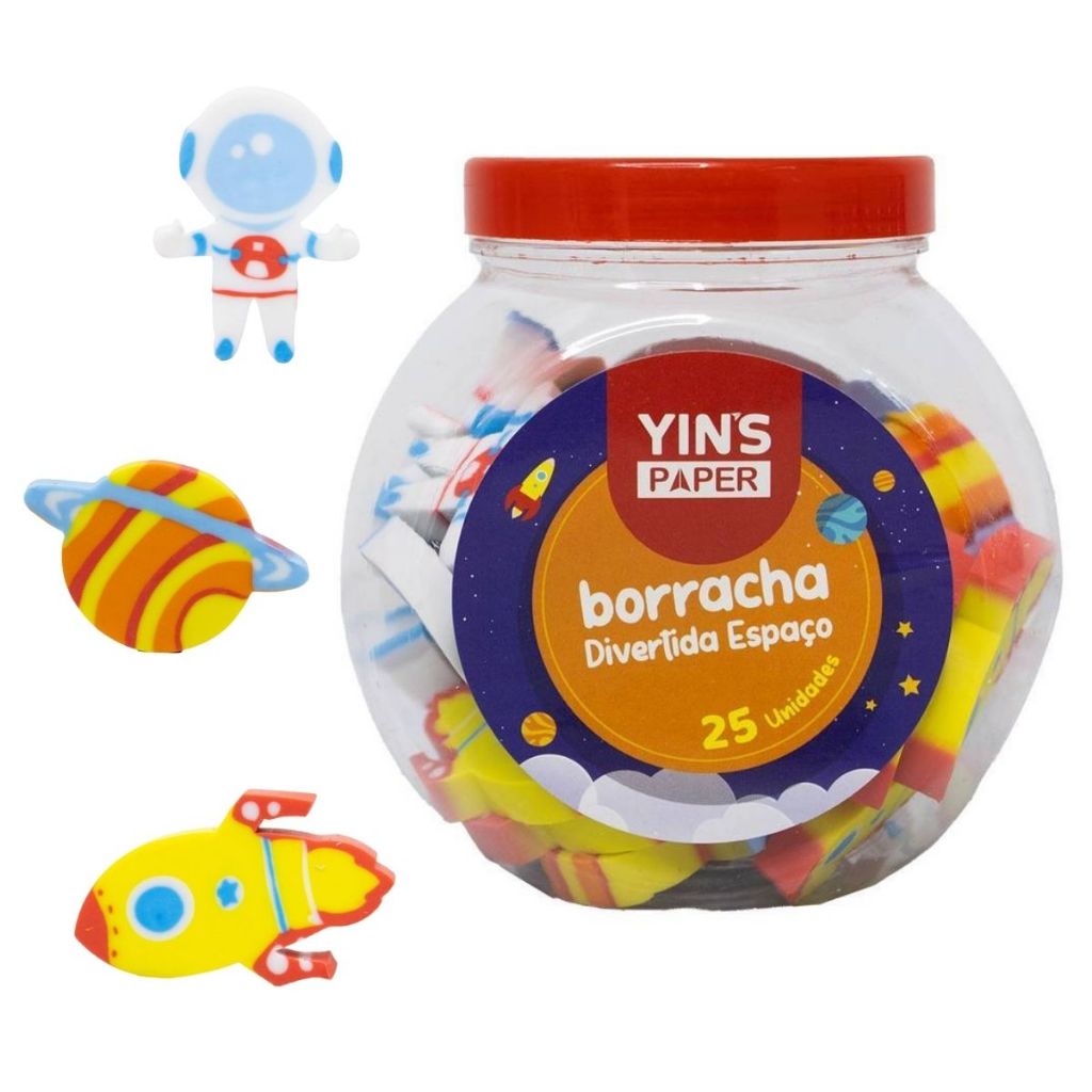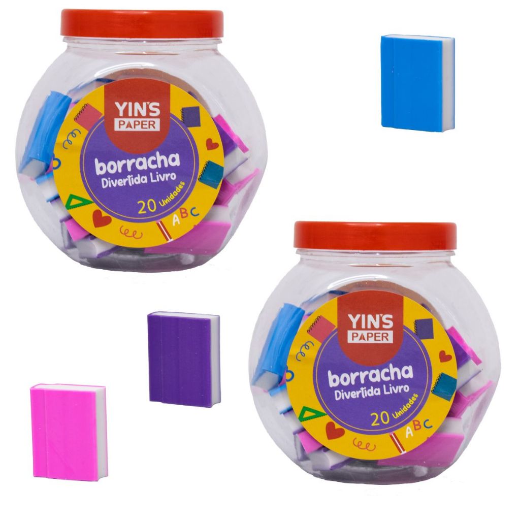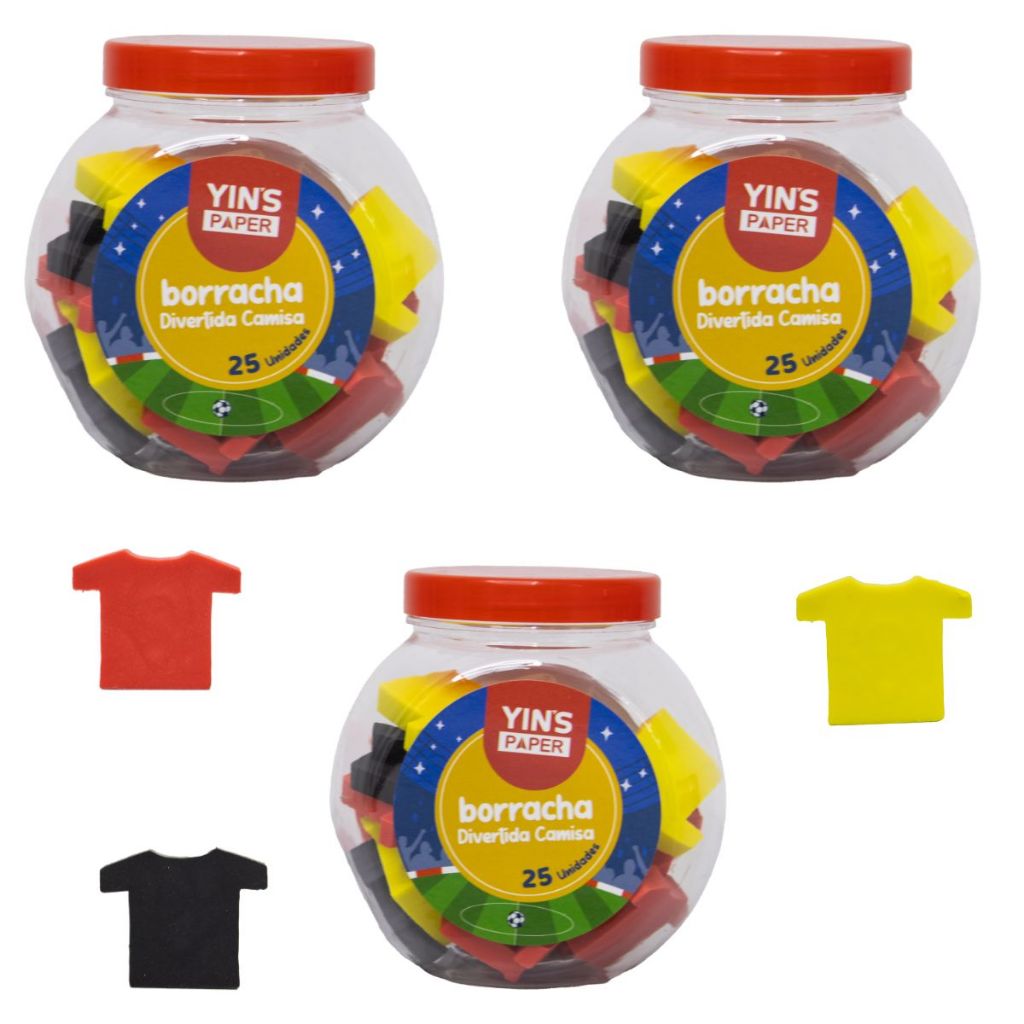 Pote com 25 Borrachas Frutas Fofas Melancia Maçã e Morango