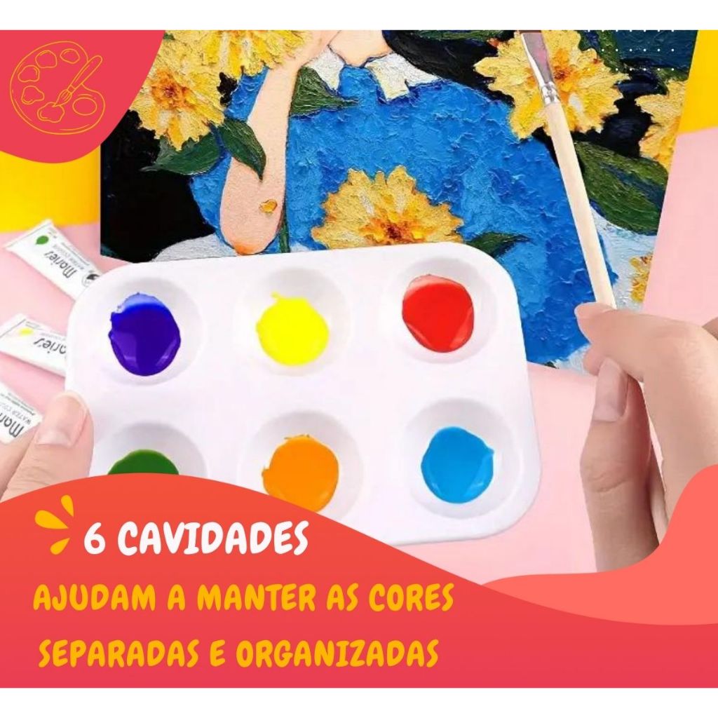 Paleta de Pintura Godê 6 Cavidades Branca Perfeita para aquarela, guache e acrílico
