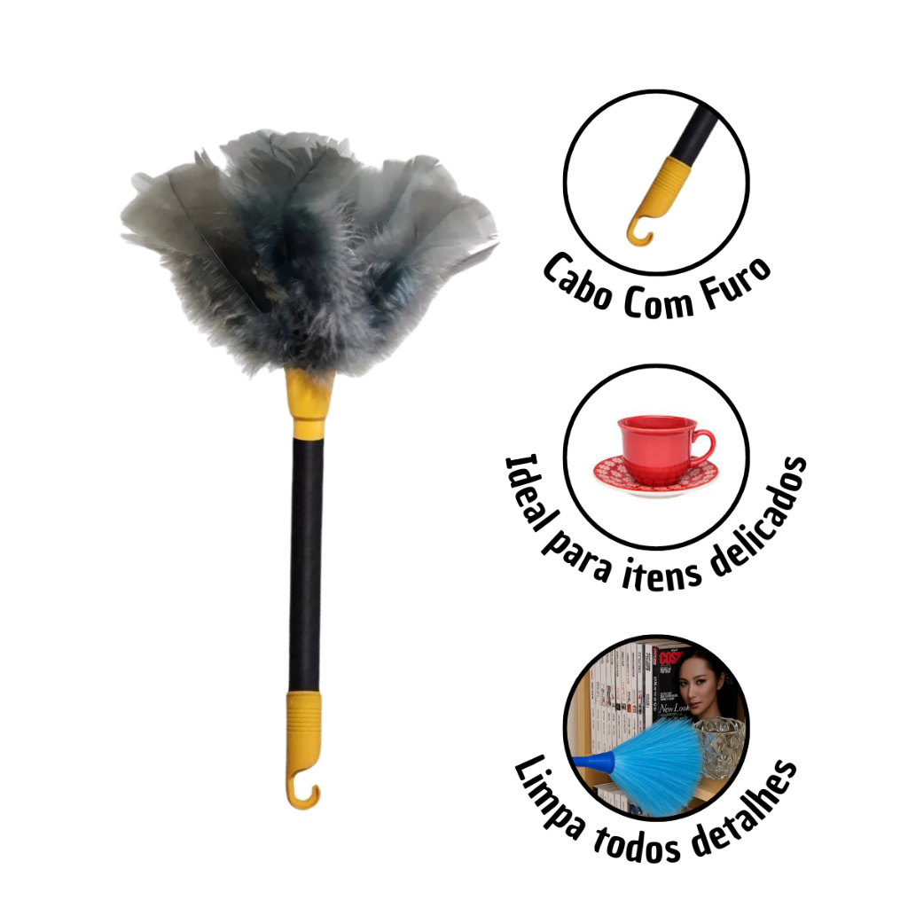 Kit 1/2/3 Espanadores Pó Pena 42 Cm Limpa Poeira Moveis Casa