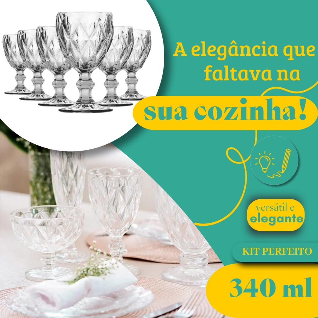 Conjunto de Taças 2/4/6/12 de Vidro 340ML Premium Ultra Resistente Diamond Transparente