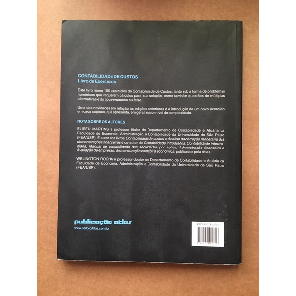 Contabilidade de Custos: Eliseu Martins: Livro de Exercícios