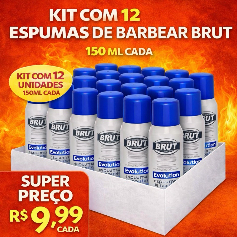 Kit com 12 Espumas de Barbear BRUT 150ml - kit economia e revenda