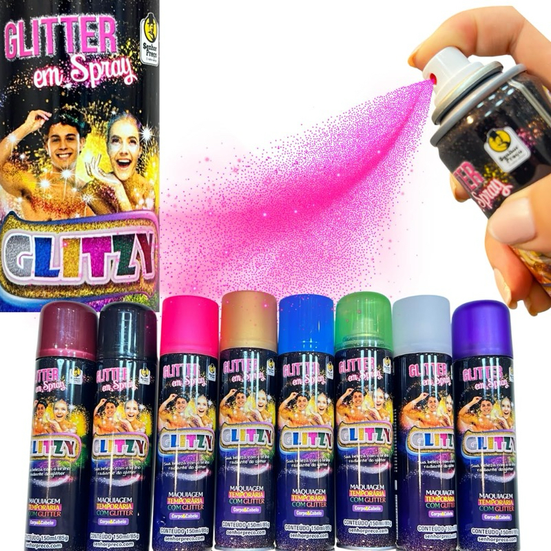 Kit com 24 Spray GLITZY Glitter Brilho Corpo Cheiroso Carnaval Fantasia - 150ml
