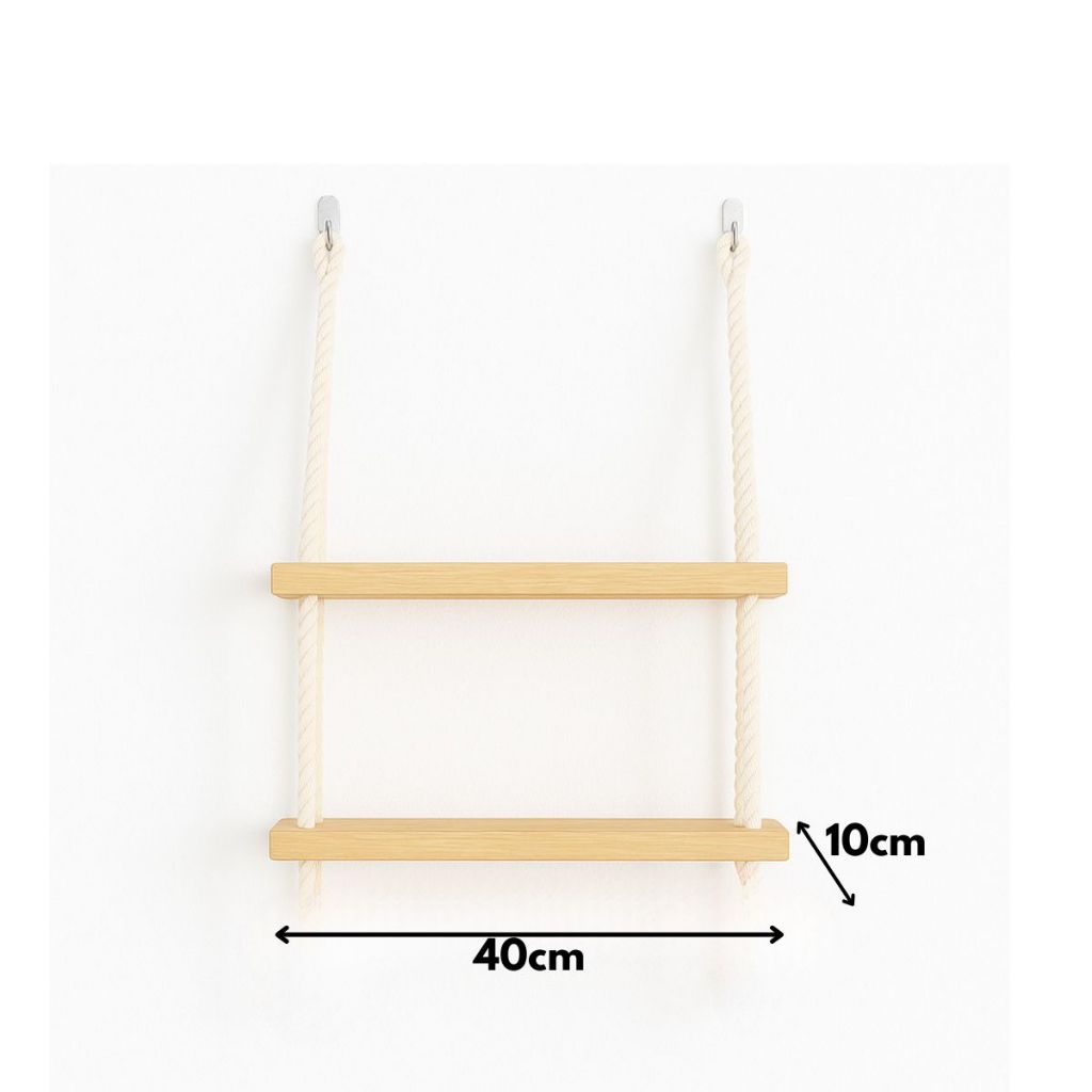 Prateleira de Madeira Suspensa com Cordas Nicho Decorativo