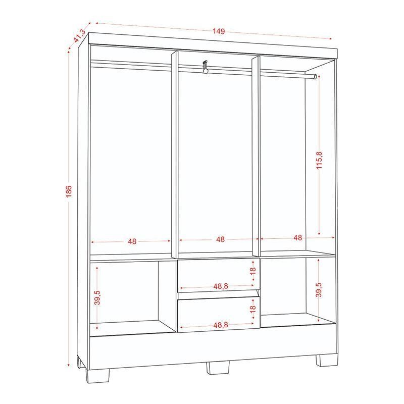 Guarda Roupa Casal Coimbra 2005138 com Armário Multiuso New 2000192 e Cômoda 2014140 Atacama Off White - Aramóveis