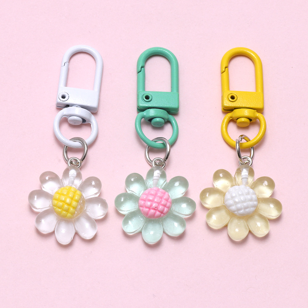 1 Pçs Saco Chaveiro Flor Transparente Resina Chaveiros Bugigangas Crianças Estudante Presente Telefone Pingente Encantos