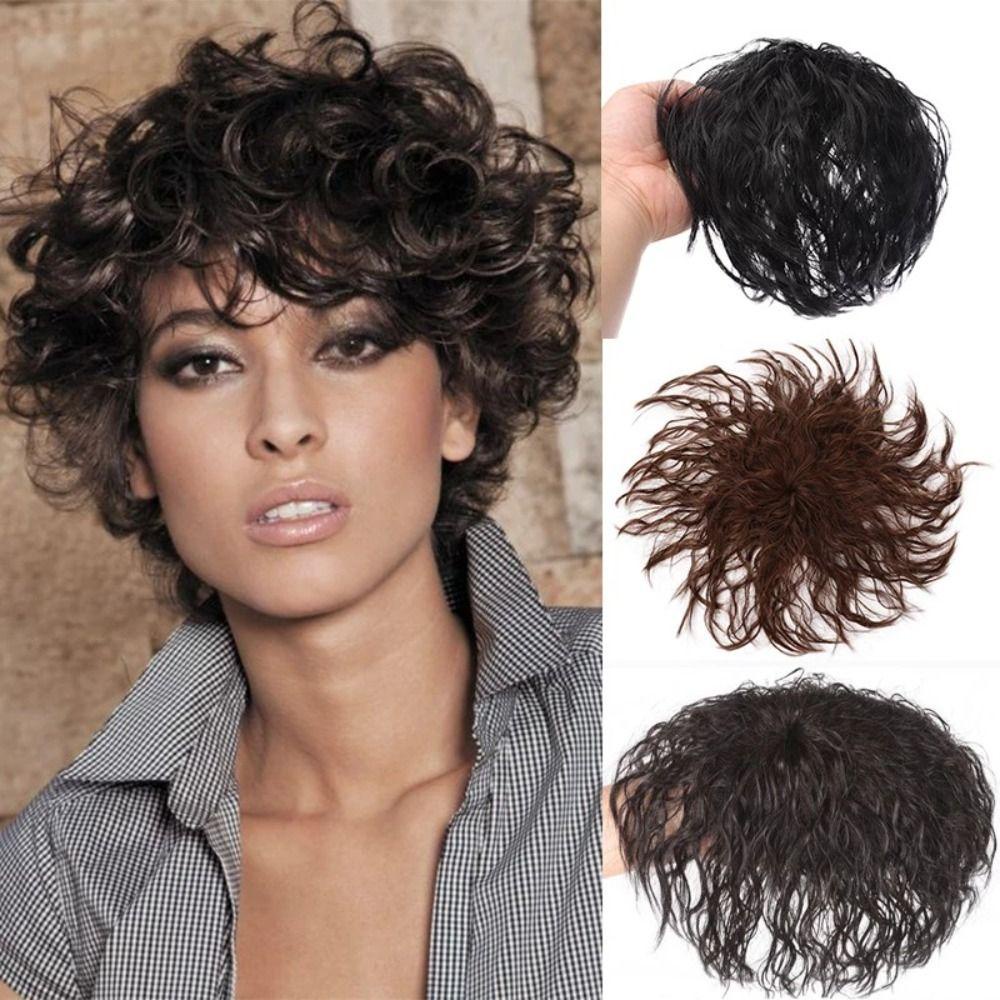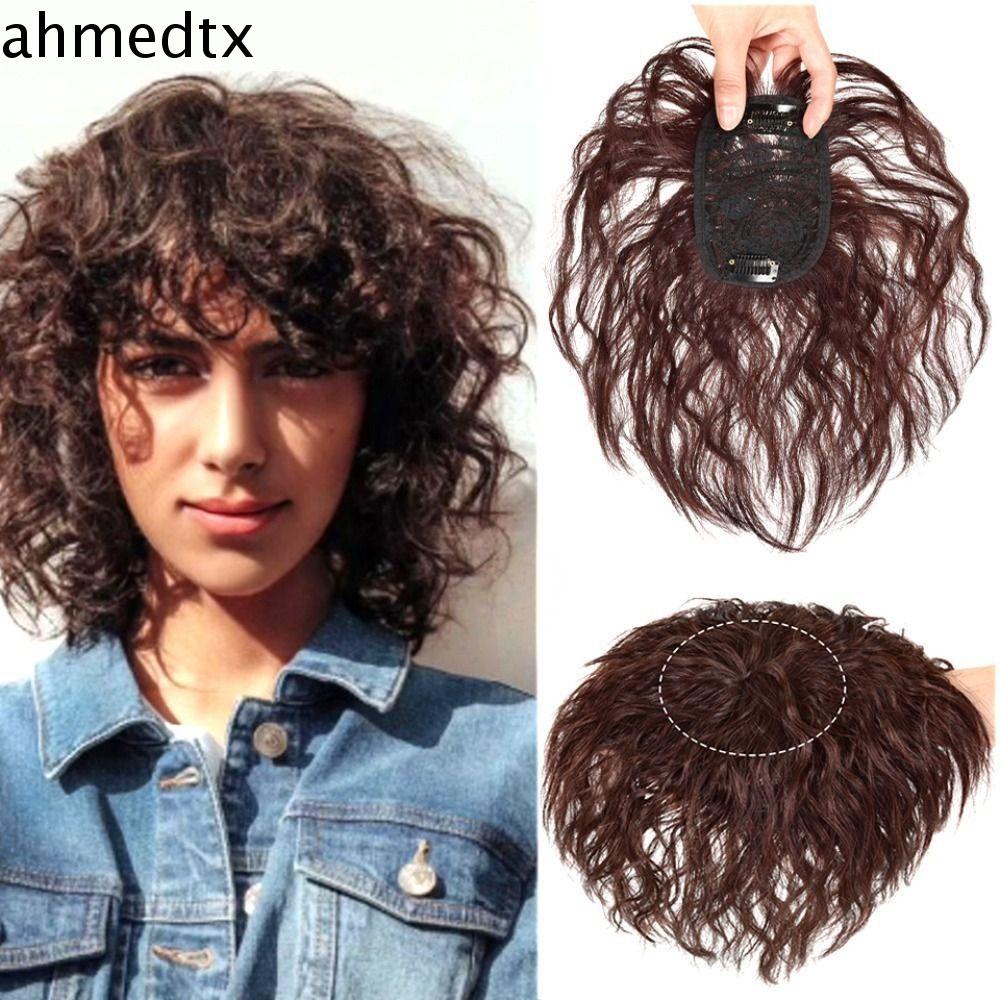 AHMEDTXB Milho Encaracolado Franja Extensões De Cabelo Sintético Natual Perucas Feminino Marrom Topper Falso Pedaço