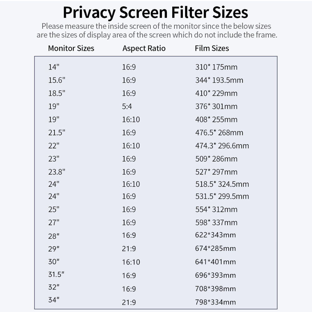 Filtro De Tela De Privacidade dolebr Reversível De Alta Transmitância 30 ° Filme Anti-Reflexo UV Invisível Para Monitor