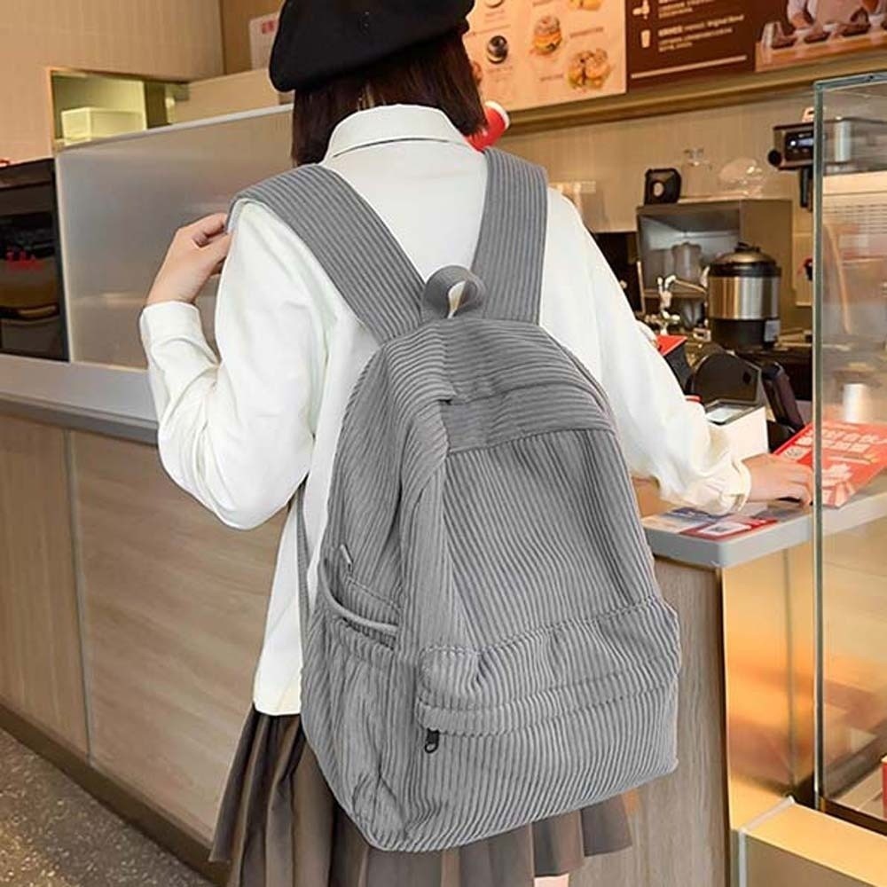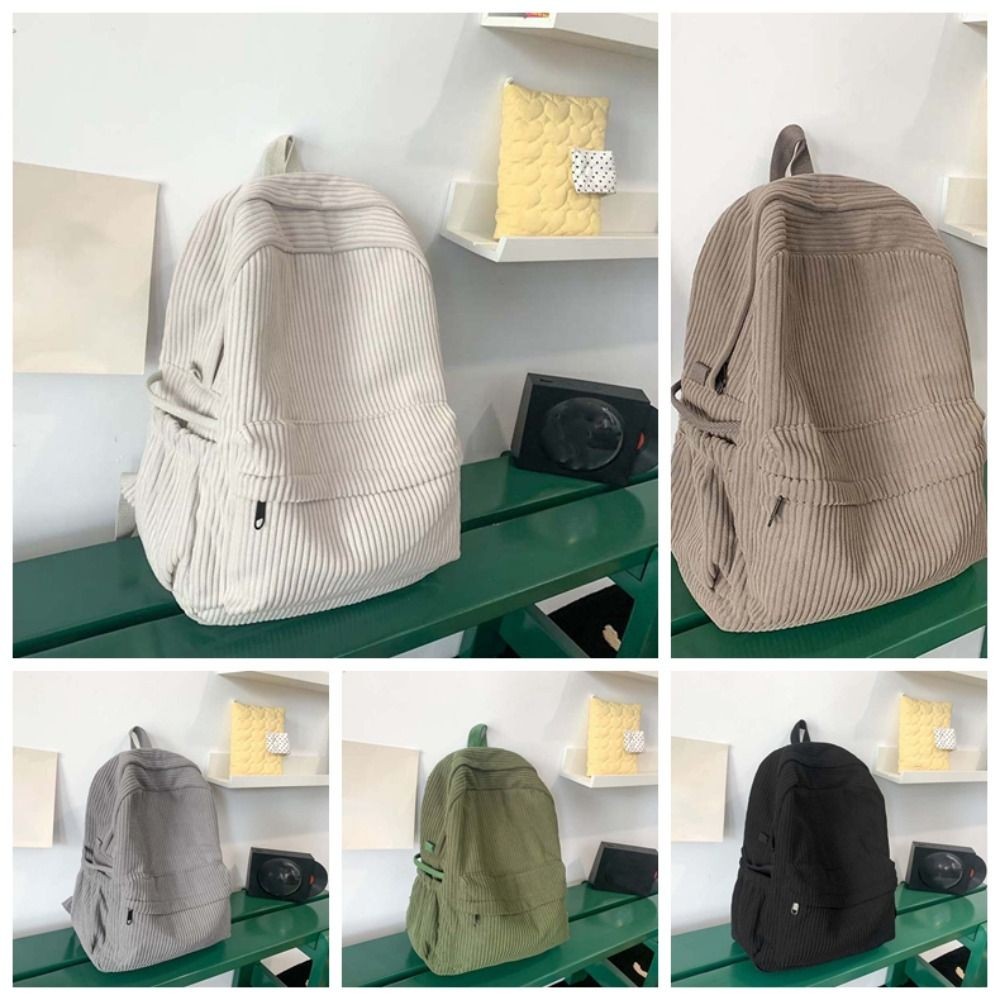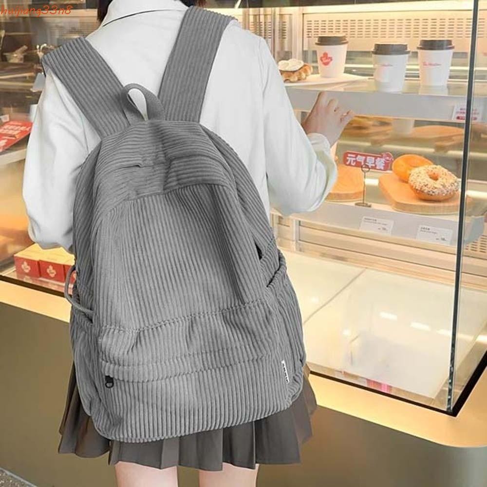 Mochila De Veludo HUIJIANG , Bolsa Escolar Leve De Cor Sólida De Grande Capacidade , Ajustável