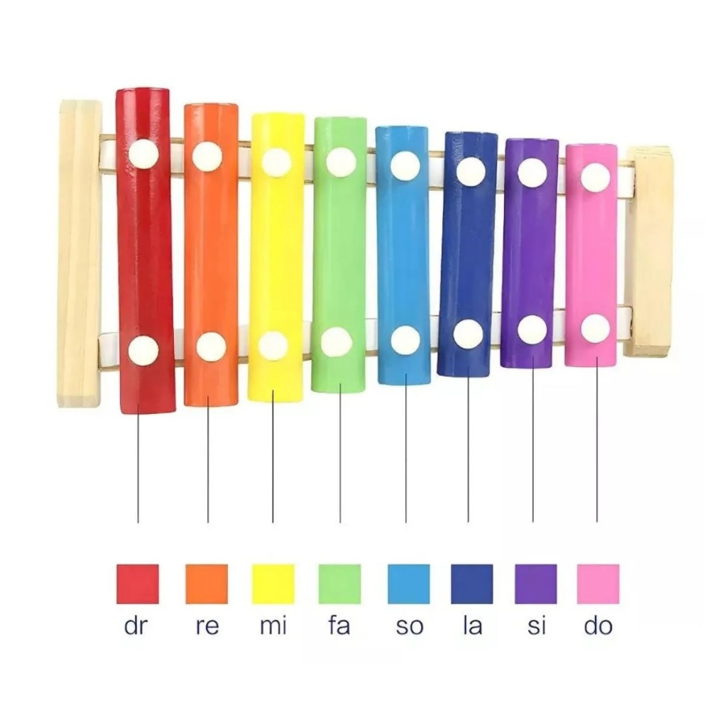 Xilofone Brinquedo Educacional Pedagógico Montessori Musical Lúdico Infantil com 8 Notas
