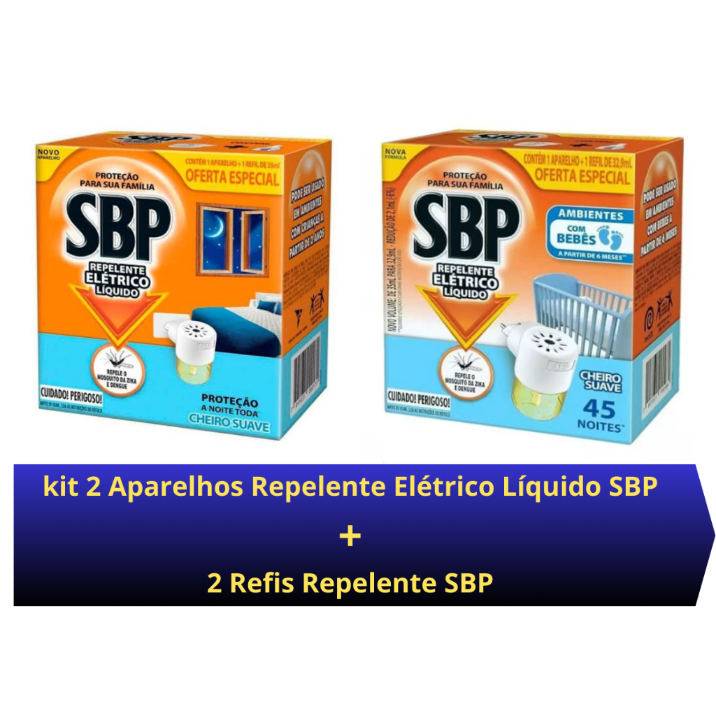 Kit 2 Aparelhos Repelente Elétrico SBP + 2 Refis Repelente SPB 35ml