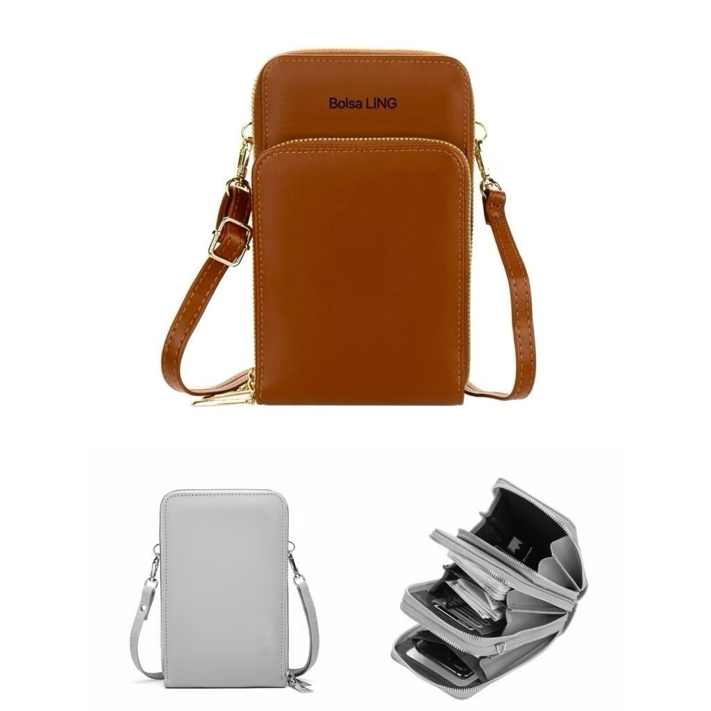 Bolsa feminina porta celular com 3 divisorias transverasal mini bag fang