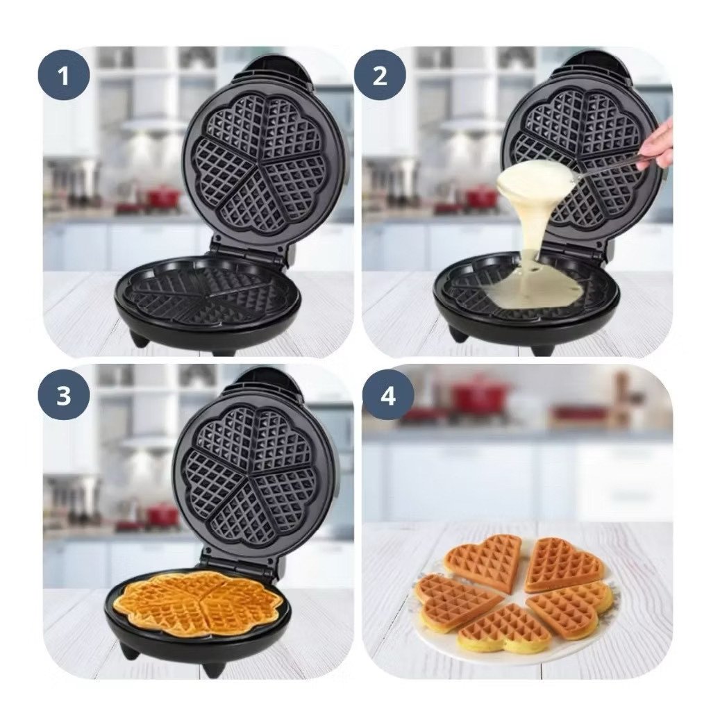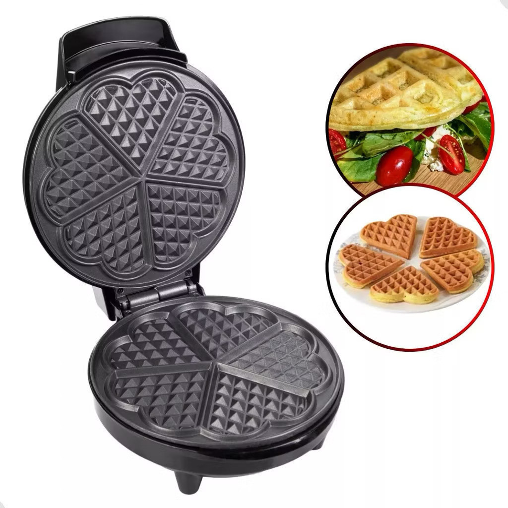 Máquina de waffles em formato de coração, fácil de limpar e perfeita para o café da manhã fang