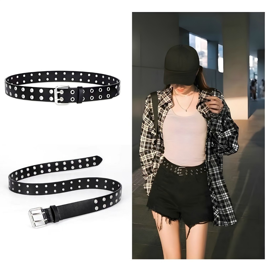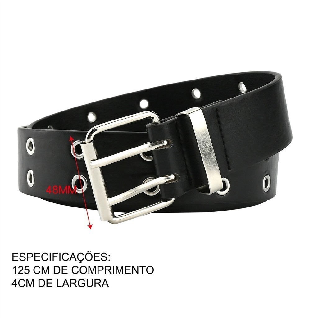Cinto Unissex Preto , Duplo Ilhós , Punk Rock Metal