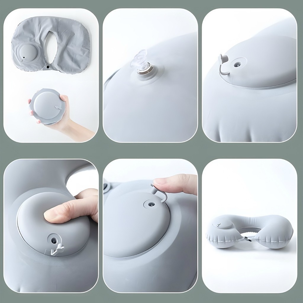 Travesseiro Inflável de Pescoço Portátil com Bomba Integrada, Compacto e Confortável para Viagem Avião Carro Camping