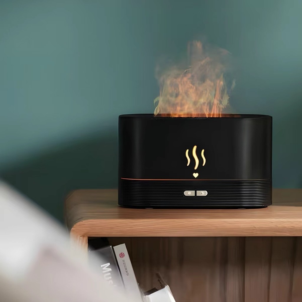 Umidificador de Chama com Difusor de Óleo Essencial e Luz LED Colorida de 7 Cores, Efeito de Chama