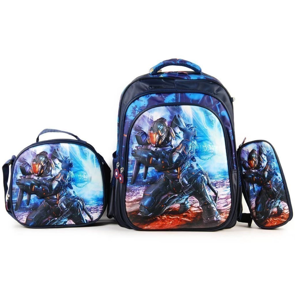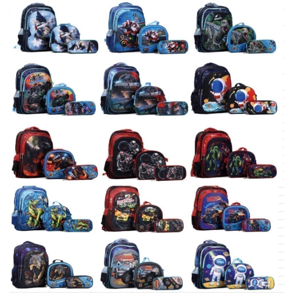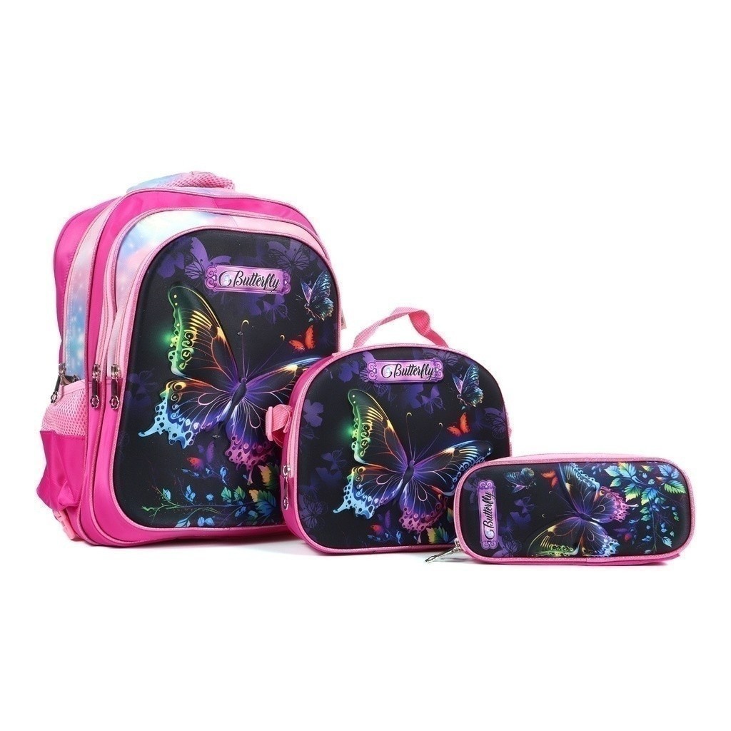Kit Escolar Infantil Bolsa Lancheira Estojo Estampas 3D Menina e Menino com luzes