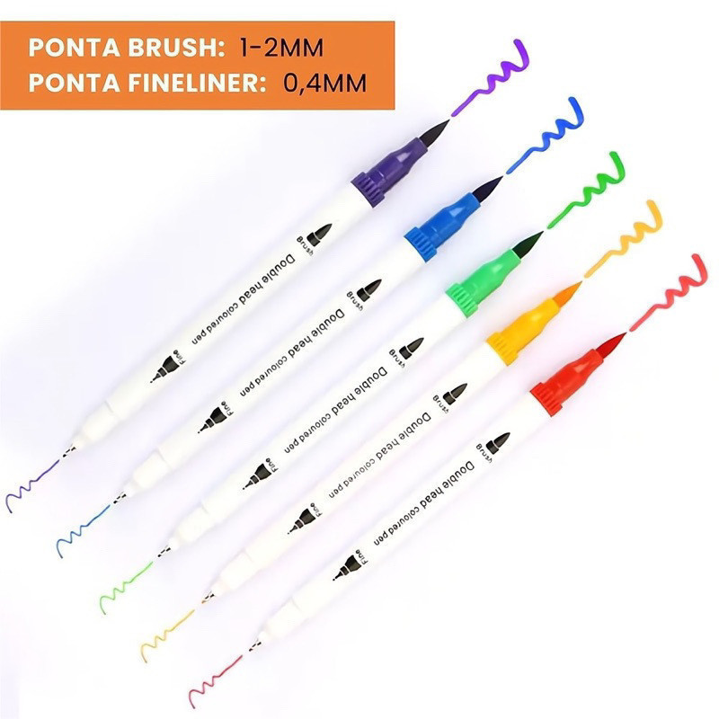 Kit 48 Caneta 2 em 1 Brush Lettering e Ponta Fina Dual Pen Canetinha Colorir Desenho