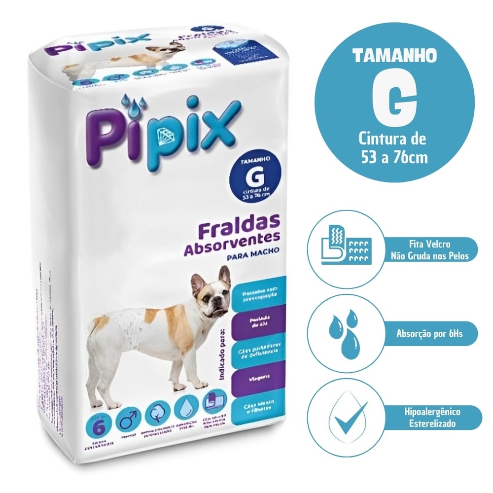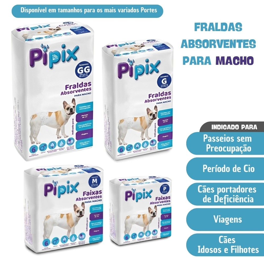 Fralda Higiênica Descartável para Cães Pet Pipix Macho 6 Unidades