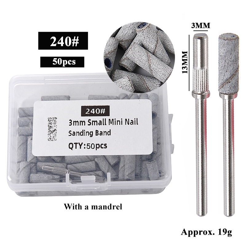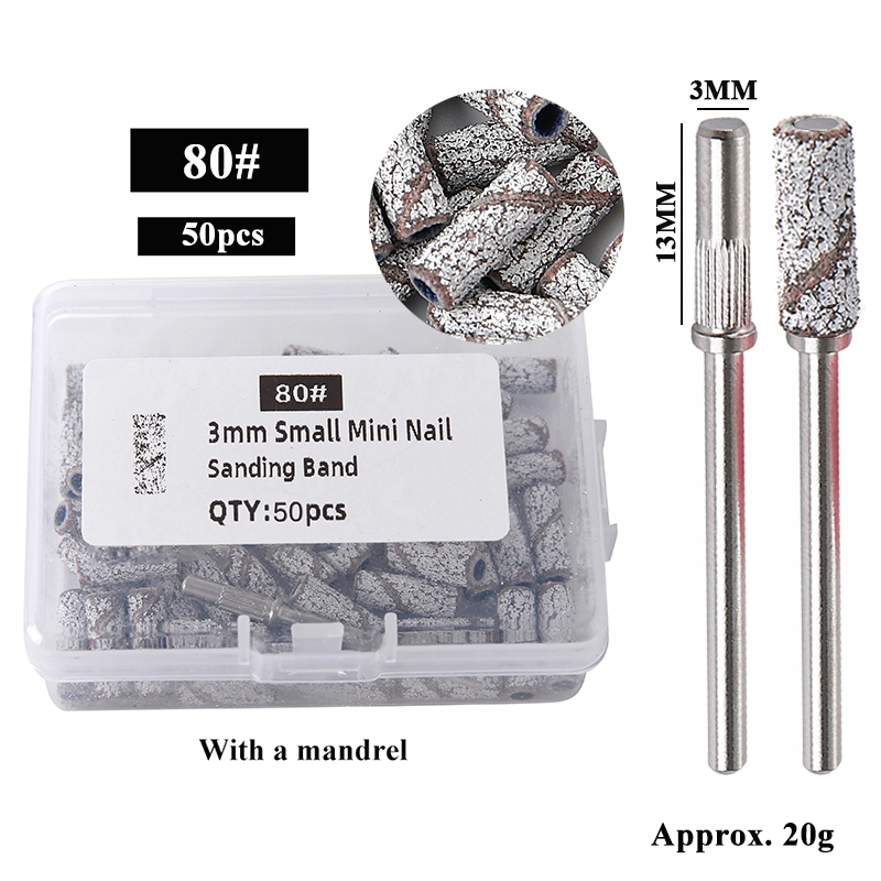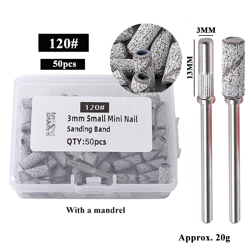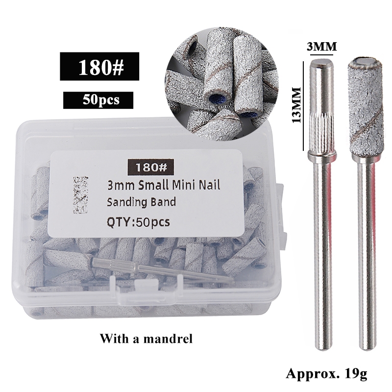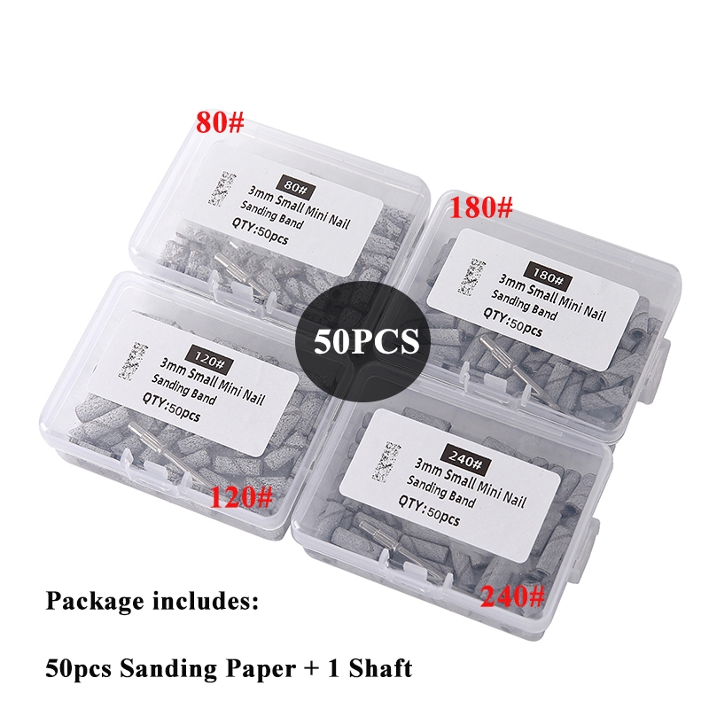 50 Pçs/Caixa 3mm Mini Bandas De Lixa Com 1 Eixo Prego Brocas Mandril Conjuntos Acessórios Manicure Elétrica Ferramenta R