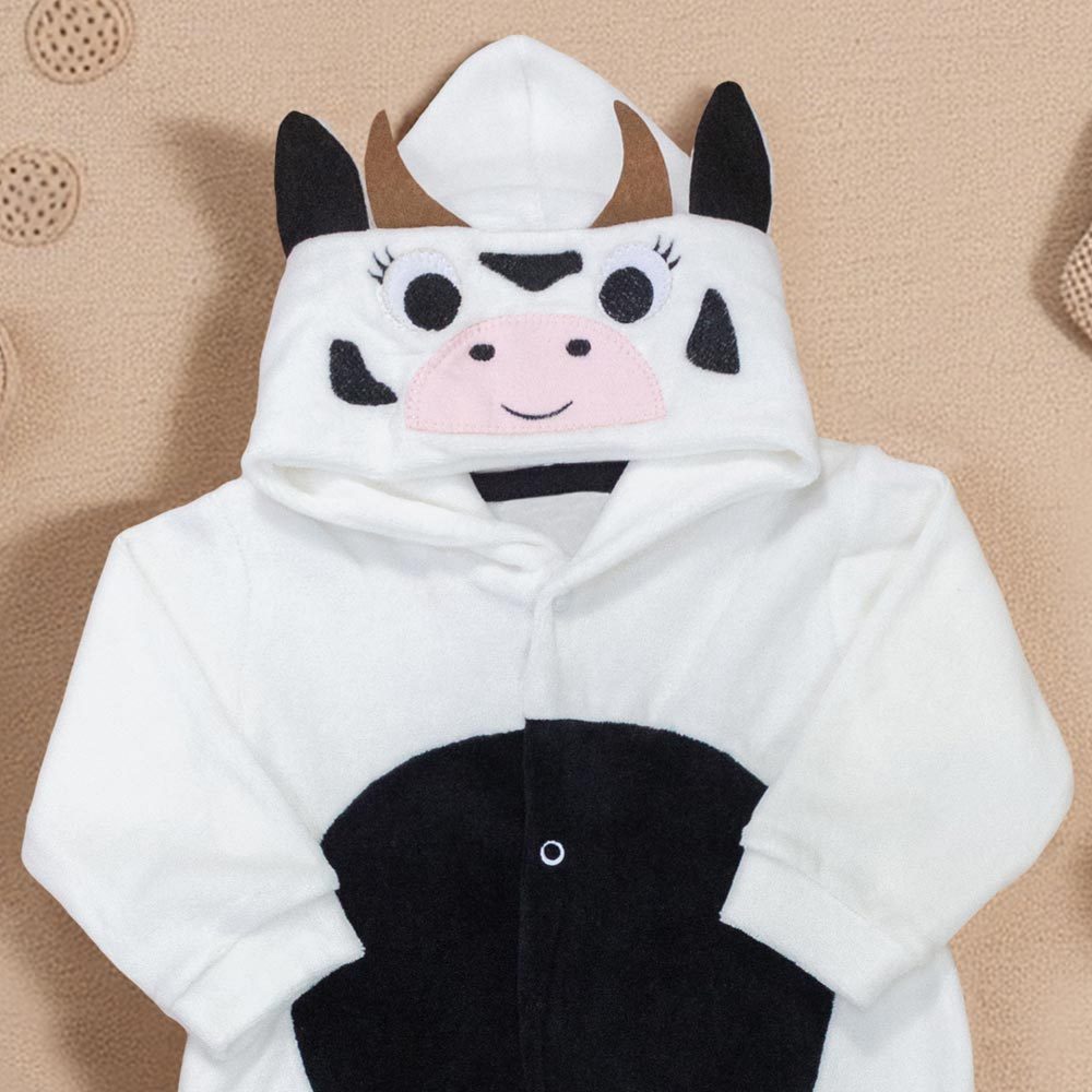 Macacão Para Bebê Em Plush Com Capuz Bordado Vaquinha Creme