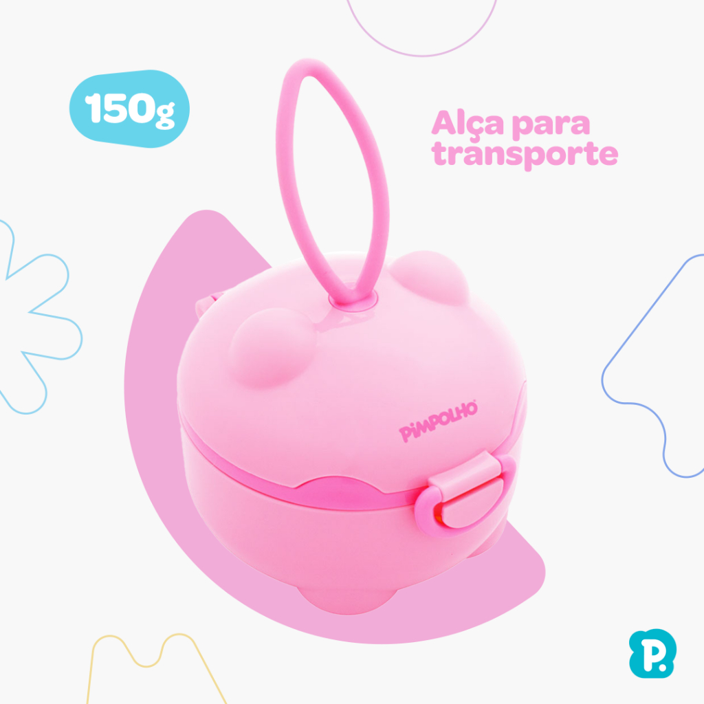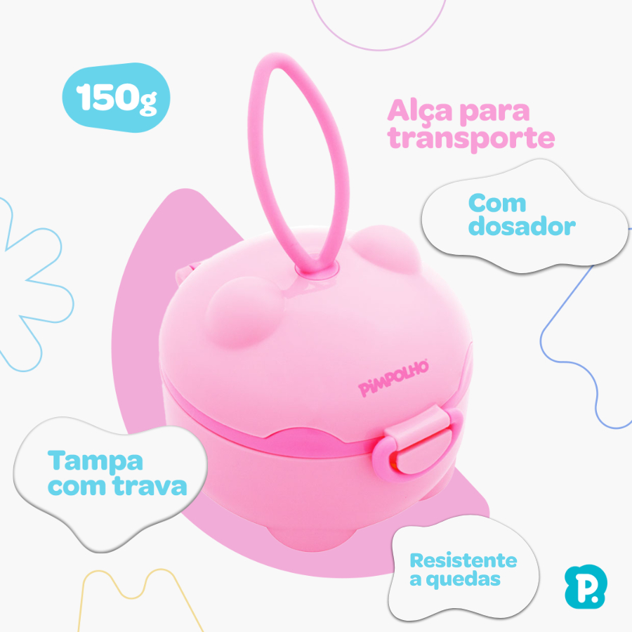 Porta Leite em Pó Mamae Baby 150 ml C/ Colher Dosador Rosa Azul Luxo Premium Alça Encaixa na Bolsa