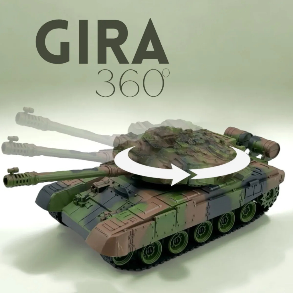 Tanque de Guerra Recarregável Interativo Grande com Controle Remoto Luz Som Super Veiculo Construção