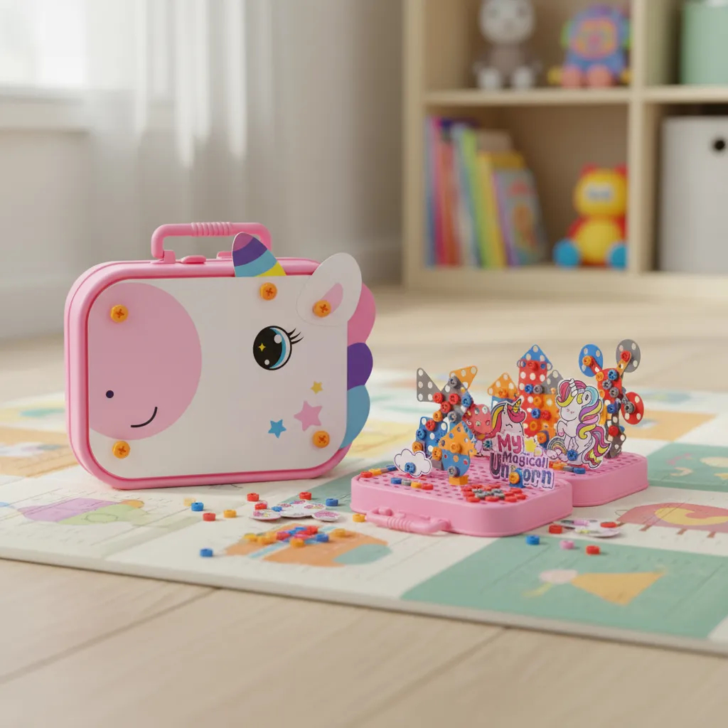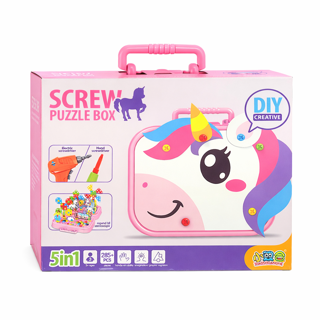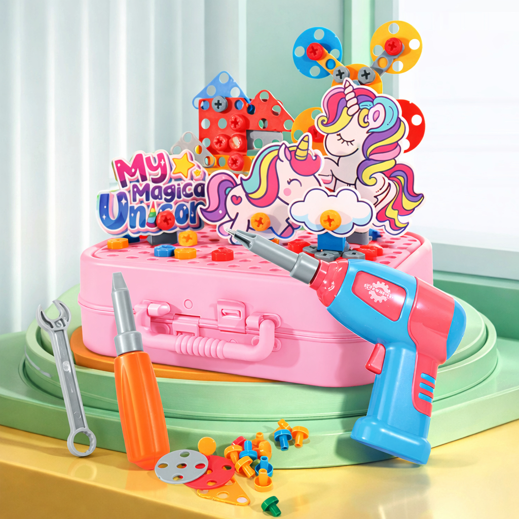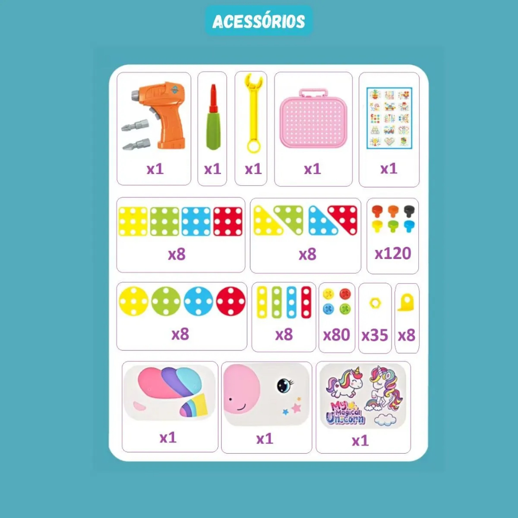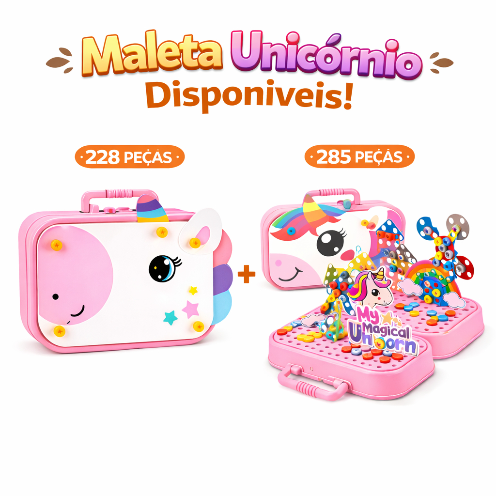 Kit Maleta Ferramentas Unicórnio Rosa Menina 228 e 285 Peças Com Parafusadeira Eletrica Infantil
