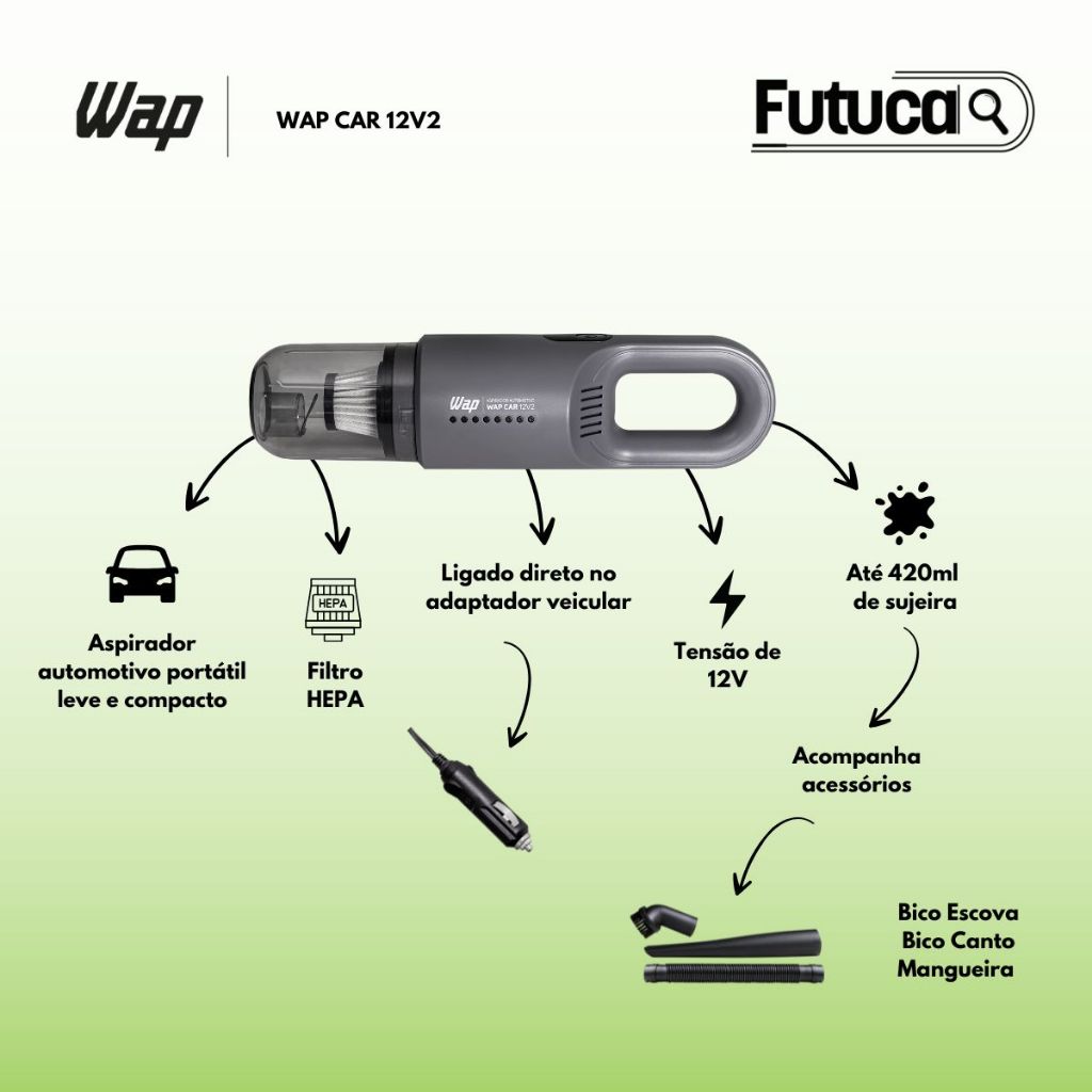 Aspirador de Pó Wap Car 12v2 sem Fio Portatil Rápido